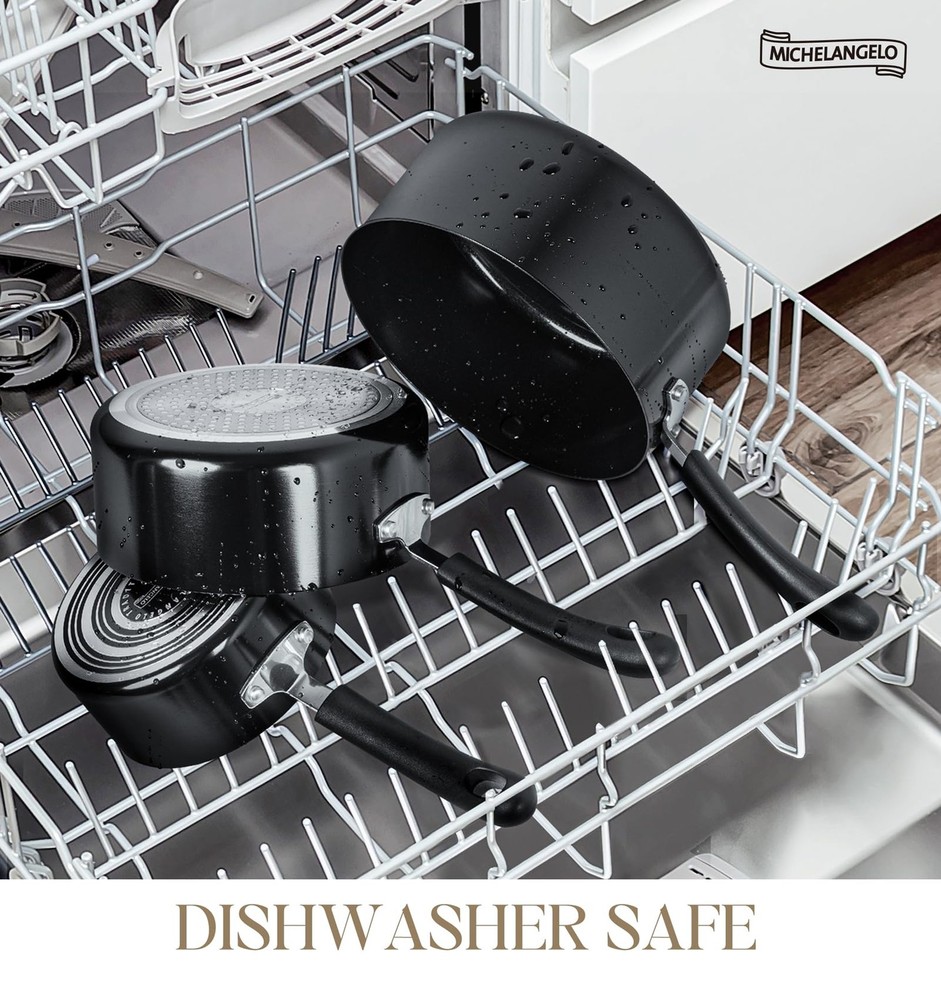 [Super Easy to Clean] - This excellent non-stick small sauce pan simplifies your cleaning process with its superior non-stick performance. Just a quick rinse with soapy water after use, and this 1 quart saucepan with lid looks like new. [SUPERIOR NON-STICK PERFORMANCE] - The saucepan is equipped with a healthy, non-toxic ceramic coating free from APEO and PFOA. Enjoy the wonderful cooking experience with our small sauce pan with lid. [Perfect Size] - Our 1 qt saucepan with lid is ideal for small everyday cooking tasks. Whether you’re making a quick bowl of oatmeal, soup, or preparing sauces, gravies and veggies, this 1 quart saucepan is the perfect size for smaller portions. [FAST & EVEN HEATING] - Our non stick pots have durable aluminum alloy bases that greatly enhance heating performance. Compatible with all stovetops and dishwasher-safe, the small cooking pot combines efficiency with convenience. [Ergonomic Lid & Handle] The sauce pan is crafted with a vented heat-resistant glass lid for real-time visibility. This ceramic saucepan features an extended cool-touch handle that prevents burns during prolonged use. Its double-riveted construction ensures industrial-grade durability and a secure, comfortable grip.