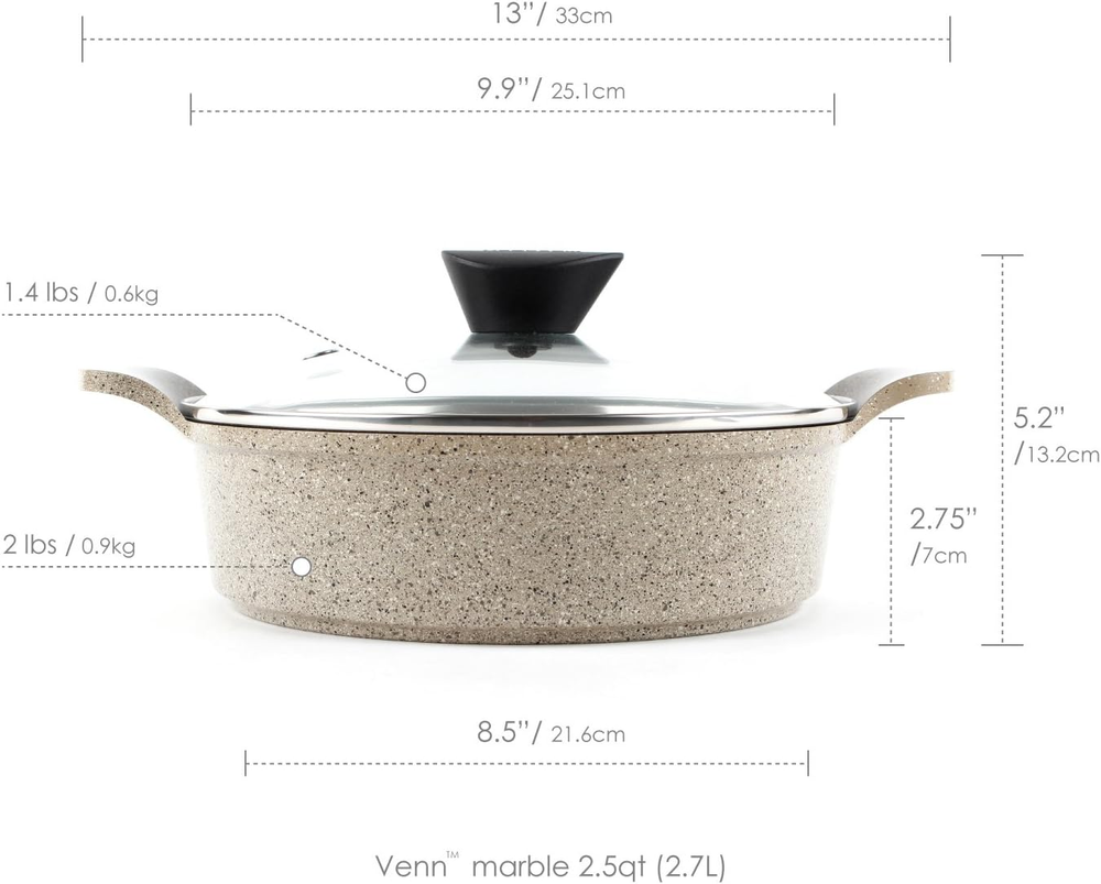 Store New Arrivals Add to Favorite View Feedback Contact Kitchen Nonstick 2.5QT Low Stock Pot with Glass Lid, Healthy Cooking Casserole, Non-Stick Ceramic Coating Cookware, Soup Kettle, Mable Color, Dishwasher Safe, Made in Korea (24Cm) Description Item model number 51320 Item Weight 3.4 Pounds Capacity 2.37 Liters Color Brown Finish Type Non-Stick Material Aluminum Global Trade Identification Number 00883599513201 Is Oven Safe Yes Is Discontinued By Manufacturer No Product Dimensions 2.75"D x 13"W x 5.2"H Coating Description Ceramic Size 2.5 Quarts 【 Design 】 The Venn Marble collection is the perfect addition to any kitchen. The luxurious marble finishing provides a strong exterior and excellent cooking surface. Complete with a steam-vented glass lid, few products can match Venn’s performance. Enjoy the unique exterior octagonal design as the cookware moves from the stove to the table. 【 Sturdy 】 This sturdy construction, characterized by its meticulous design and premium Die Cast aluminum material, ensures that the cookware will withstand the rigors of daily use, making it an excellent investment for any kitchen seeking durable, reliable, and long-lasting culinary tools that stand the test of time. 【 Safe 】 Neoflam cookware is produced with Ecolon ceramic coating. This is an traditional nonstick coatings, and it is free of PTFE/PFOA. When Ecolon is applied to the cast aluminum body, the cookware transforms into a deliciously colorful piece with amazing features including a lightweight frame, a durable body, and a scratch resistant, easy to clean surface. 【 APPLICATION 】 This 2.5QT cooking Kettle can be used for a variety of dishes, including soups, ramen, udon, pasta, vegetable infusions, and seafood dishes. Additionally, it's versatile for making broth or cooking sauces. 【 ORIGIN 】 Its exclusive look is the work of NEOFLAM. Designed and manufactured in KOREA with outstanding and exceptional quality control. Product Description Latest Technology The cast aluminum body of this cookware is not only highly heat conductive, but it also creates a convection effect that helps to distribute heat evenly, resulting in more efficient cooking. Additionally, this cookware is manufactured using safe ingredients, making it a healthy and safe choice for you and your family. Steam Vent Few products can match the performance of Venn, which comes complete with a steam-vented glass lid. You can enjoy its unique exterior octagonal design as the cookware moves from the stove to the table. This steam vent creates better cooking results with less spillage while cooking, preventing pots from over-boiling and offering better heat control, all while helping to contain the nutrients of the food being prepared. Easy Grip Handle Crafted with exceptional quality and attention to detail, this cookware is designed to elevate your cooking experience. Not only does it feature a durable Die Cast body that can withstand high temperatures and resist warping, but it also boasts a handle that stays cool to the touch while cooking, providing a secure grip and making it easy to flip food with confidence. Ecolon Ceramic Nonstick Coating Made From All-Natural Materials Ceramic coating is a safe and natural alternative to traditional nonstick coating. Superior Nonstick Performance Ecolon is durable, scratch resistant, and offers incredible nonstick performance. No PFOA/PTFE Ecolon is 100% free of PTFE and PFOA. Venn Collection Features Lightweight Cast Aluminum Glass Lids Available Lid Knob with Steam Vent Ecolon Ceramic Nonstick Coating No PTFE/PFOA Dishwasher Safe ABOUT US We offer the best prices around on high quality products. Our E-store includes media such as books, movies, music and games while offering electronics, toys, sporting apparel, clothing, tools, general home, garden items and more. SHIPPING We are always working hard to ensure your package arrives as soon as possible. Please understand that some factors like weather, high postal traffic, and the performance of shipping companies are outside of our control. We offer free shipping to the lower 48 states and ship within 2 business days of payment, usually sooner. We do not accept P.O. Boxes. Please provide a physical address. For shipping outside of the continental USA, we only use eBay's Global Shipping Program.The item is shipped to KY and then sent to the rest of the world. International customers are responsible for all duties and taxes. Continue to check out in order to calculate costs for shipping the item to your country. Messages regarding eBay's Global Shipping Program MUST be directed at eBay EXCLUSIVELY. RETURNS We offer a 30-Day Return Policy on items which you are not completely satisfied with. You have the option for a full-refund or an exchange of the item. No returns are available on items shipped outside of the USA. PAYMENT We accept PayPal. CONTACT US This page content is yet to come Please ad us to your favorite seller and visit again later Thank You CUSTOMER SATISFACTION We try our very best to make sure every customer is completely satisfied. If there's a problem, message us! We're happy to help. WE ACCEPT Copyright © 2021 AutoDS. | All Rights Reserved