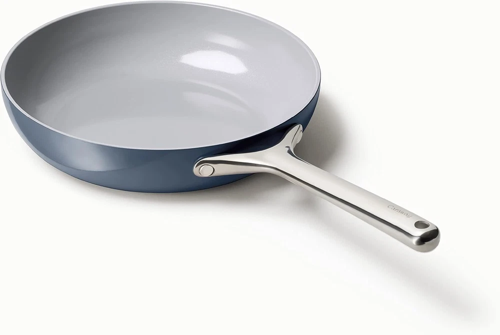 CARAWAY NOW LIVE ON AMAZON: Caraway has officially launched their best-selling and consciously crafted cookware on Amazon for everyone to enjoy. Time to upgrade your pots and pans and spruce up your kitchen decor! 10.5” FRYING PAN: Perfect for slide-off-the-pan eggs, sauteing veggies, flipping pancakes and more. This durable non-stick pan makes cooking easier than ever, cleaning (dare we say) enjoyable, and adds a pop of color to any home. NATURALLY NON-STICK: Our naturally slick non-stick pots and pans require less oil or butter for cooking and minimal scrubbing for a spotless clean, giving you a healthier and more enjoyable at-home cooking experience. NON-TOXIC COATING: All Caraway pot and pan products are free of PTFE, PFOA, PFAS, lead, cadmium and other toxic materials that can leach into your food, making them safe for you, your family and the environment. SIMPLE CARE: Our cookware ais made for any kitchen and cooktop. Use them on low to medium heat and add a dash of oil or butter for an effortless glide. Our cookware is also oven-safe up to 550ºF. Product Description Discover Caraway's Ceramic Cookware Pieces Customer Reviews 4.3 out of 5 stars 3,640 4.2 out of 5 stars 4,323 4.5 out of 5 stars 1,541 4.7 out of 5 stars 1,380 4.7 out of 5 stars 762 Price $445.00 $ 445 . 00 $115.00 $ 115 . 00 $165.00 $ 165 . 00 $120.00 $ 120 . 00 $145.00 $ 145 . 00 Materials Ceramic Coated Ceramic Coated Ceramic Coated Ceramic Coated Ceramic Coated Dimensions 4-Piece Set With Storage 8.0 or 10.5 in (two sizes) 12.0 in | 4.5 qt 1.75 or 3.0 qt (two sizes) 10.5 in | 6.5 qt Non-Stick ✔ ✔ ✔ ✔ ✔ Non-Toxic ✔ ✔ ✔ ✔ ✔ Easy Cleaning ✔ ✔ ✔ ✔ ✔
