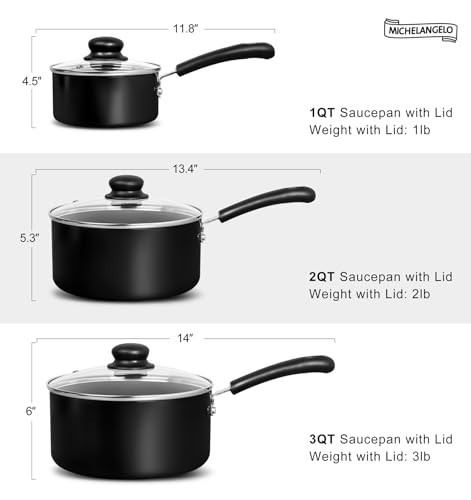 Nonstick Ceramic Saucepan Set with Lid and Steamer in 1QT 2QT 3QT Sizes Easy to Clean
