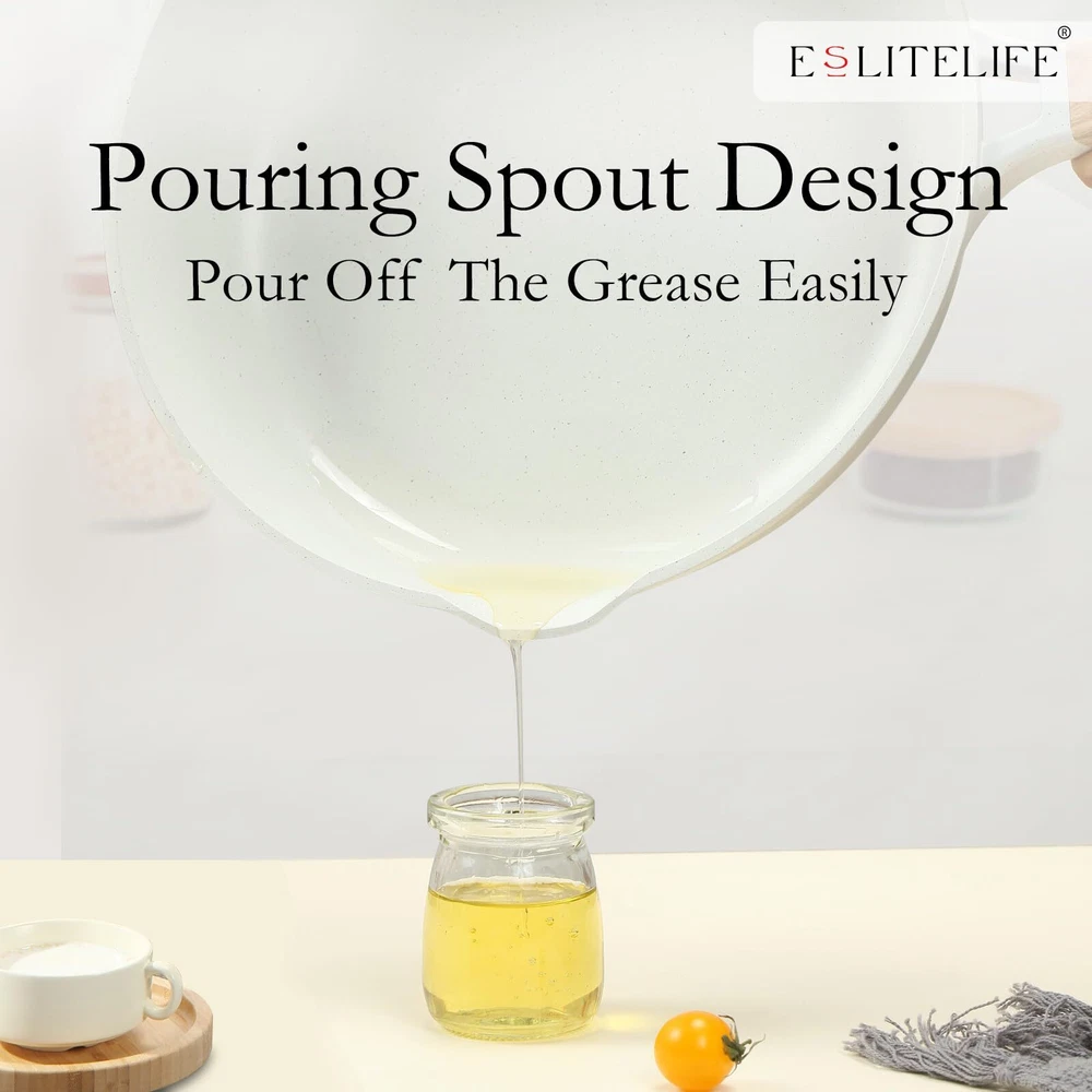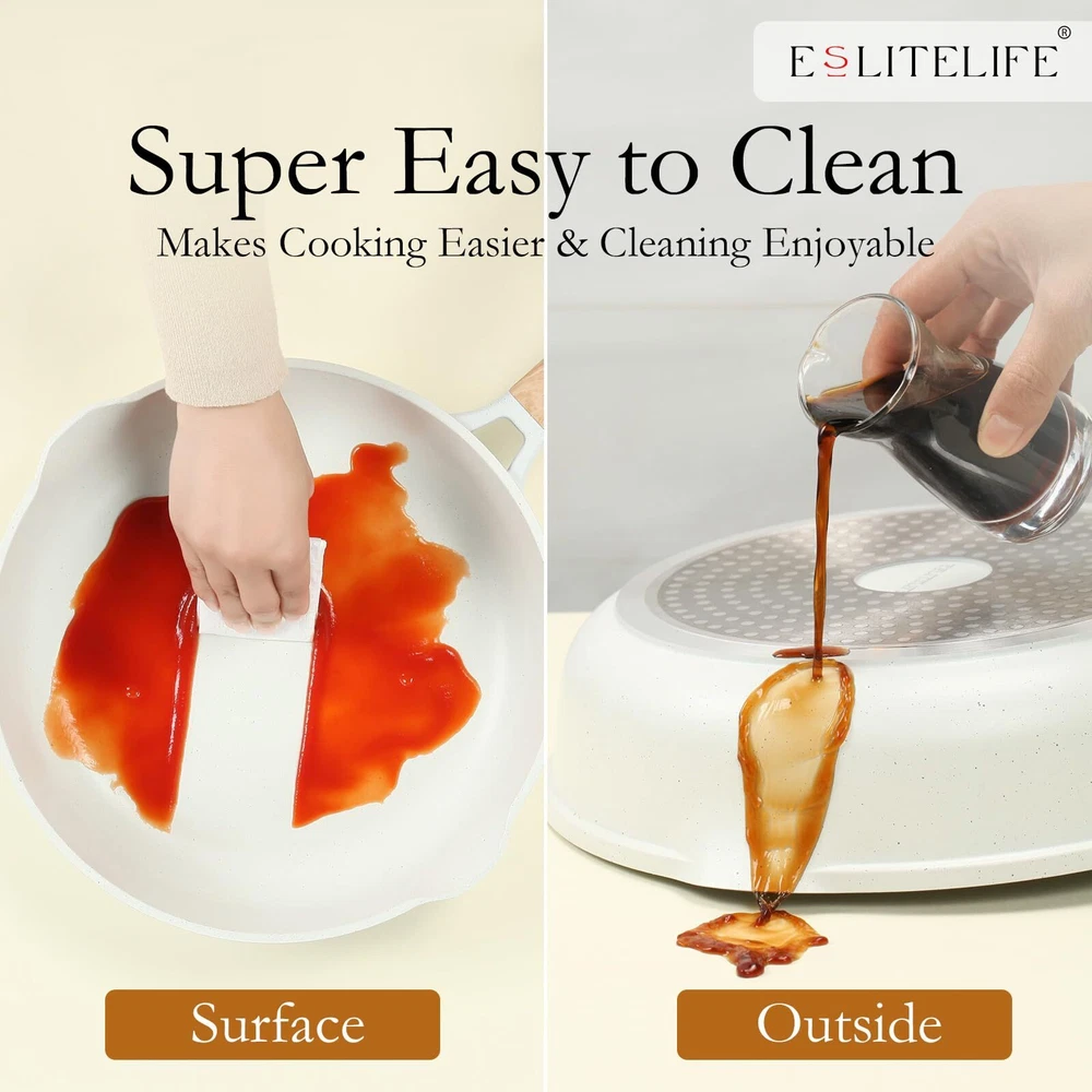 Nonstick Frying Pan Skillet with Lid, PFOA Free Eco-friendly Non-Stick Granite Coating & Super Easy to Clean - Our frying pan interior is coated by non-stick granite coating, SGS approved, 100% PFOA free. Require less oil or butter for cooking and minimal scrubbing for a spotless clean, giving you a healthier and more enjoyable at-home cooking experience. Widely & Easy to Use - Our nonstick frying pan can be used for any cooking needs, perfect for slide-off-the-pan eggs, sauteing veggies, flipping pancakes and more, the heat resistant bakelite handle are suitable for grasping and staying cooling while cooking. Time to upgrade your pots and pans and spruce up your kitchen decor! Compatible with All Stovetops - Design with perfect magnetized base makes it rapid heat transfer and long-time use, used effectively on gas, ceramic, electric, and induction stove tops, made for any kitchen and cooktop, an ideal replacement solution for your aging, worn out, or failed cooking equipment. Sturdy & Durable Body - The advanced die-cast aluminum technology, combined the advantage of cast-iron and traditional riveted cookware, conducts heats quickly & evenly, the thicken induction compatible bottom provides a stable heat distribution during cooking, rapidly heating up, saves time and energy.