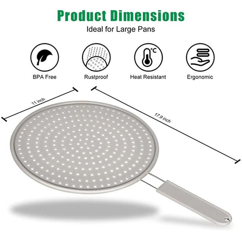 Product features: Is made of premium silicone, which is non-toxic and odorless, safe and healthy to use. Can be cleaned quickly or wiped with a damp cloth, which is easy to clean. Can be used as a filter, cooling pad, or as a drainage board. And it Can be treated as too for preventing a grease splash, which can prevent 99% of grease splashes. And it can be used as a strainer to filter liquid from a cooking pot or any food preparation container. Features the universal size, which is suitable for small and large pans. Parameter: Name: silicone splatter Size: As the pictures shown Material: Silicone + stainless steel Colour: grey Package includes: Silicone Splatter*1 Note: Please allow minor error due to manual measurement. The colors may be a little difference for the different monitor display.