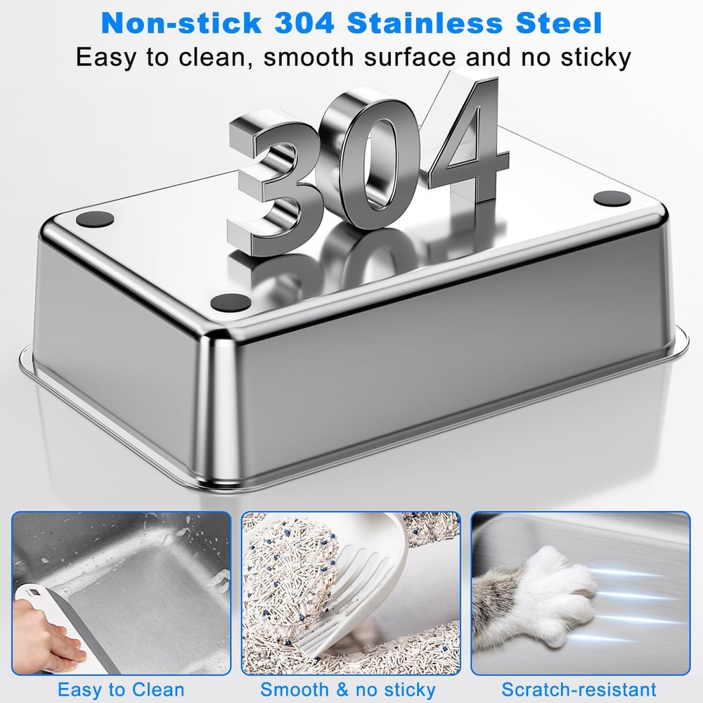 Non-stick Stainless Steel Litter Box, XL Side Opening Splash-Proof & Leak-Proof