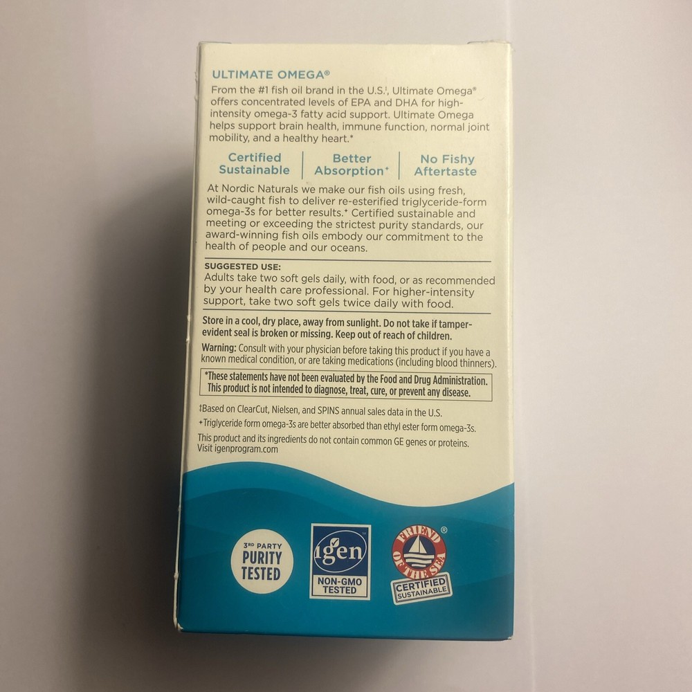 The Nordic Naturals Ultimate Omega Xtra softgels are specially formulated to support heart health, immune function, and brain and nervous system health. Each serving contains a potent blend of omega-3 fatty acids from fish oil, encapsulated in gelatin for easy absorption. With a delightful lemon flavor and a long expiration date of 10/2027, these dairy-free and gluten-free supplements are ideal for both men and women looking to maintain optimal health. Take 60 softgels after or before meals for a convenient and effective way to nourish your body with essential omega fatty acids.