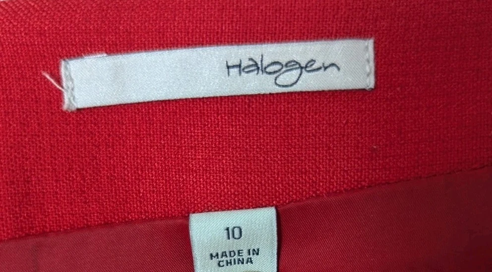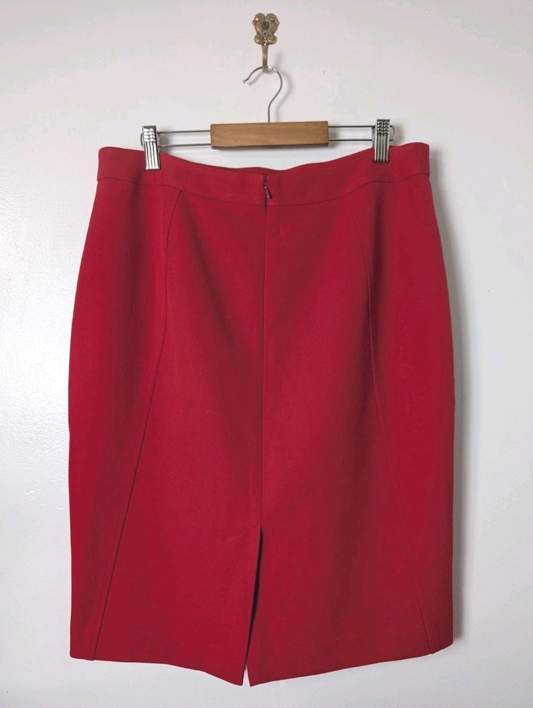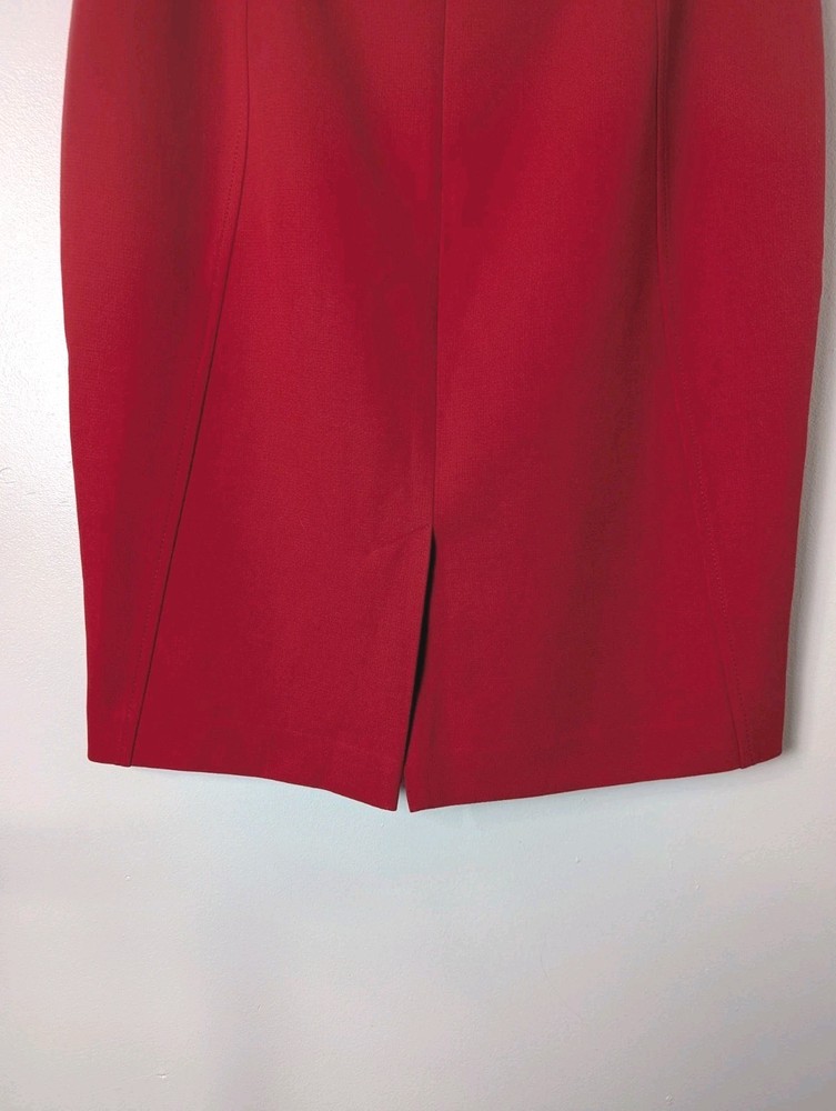 Nordstrom Halogen Pencil Skirt Red Size 10 Lined Stretch Business Career Back Zip Closure Back Slit 64% Polyester 33% Viscose 4% Spandex Lining 100% Polyester Measures approximately 32" waist (16" flat lay) and 24" length Good Condition - no rips, holes, tears, pulls