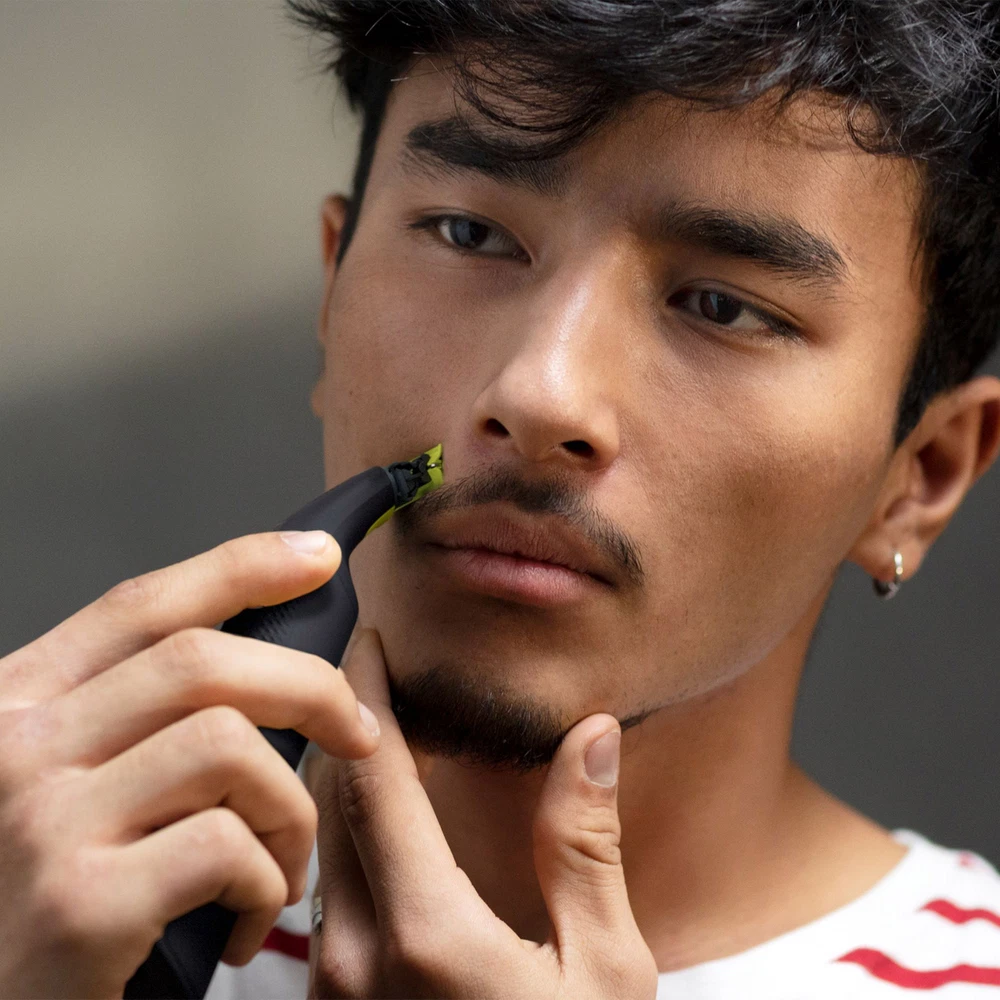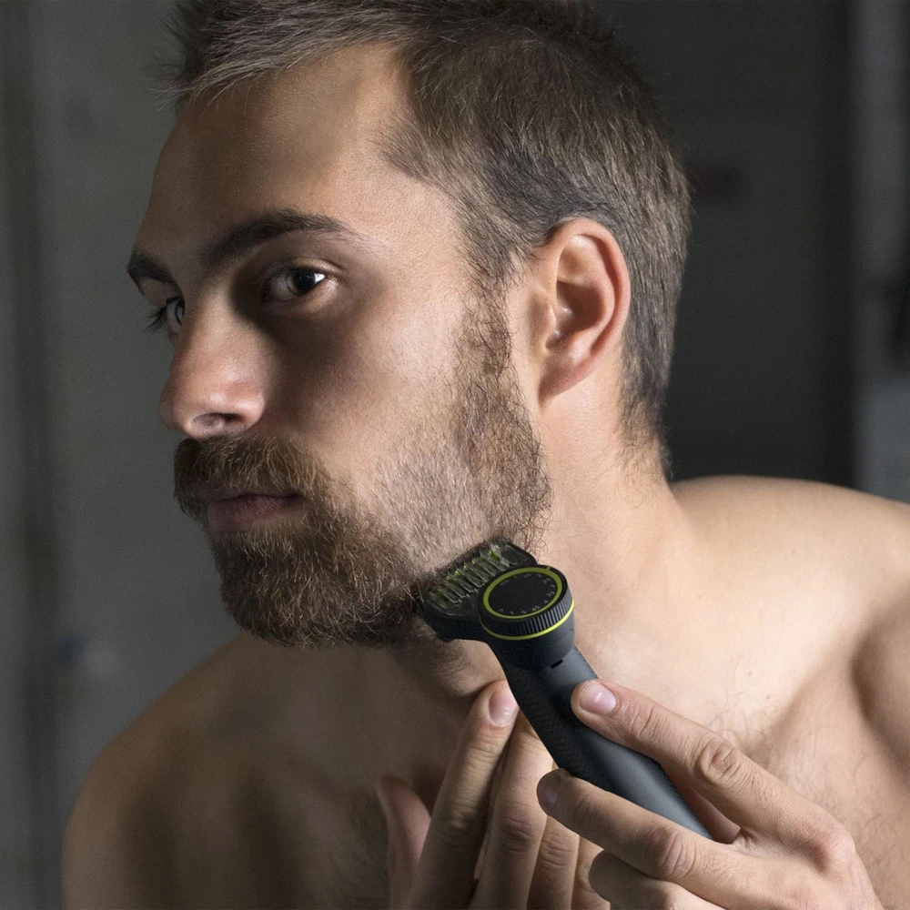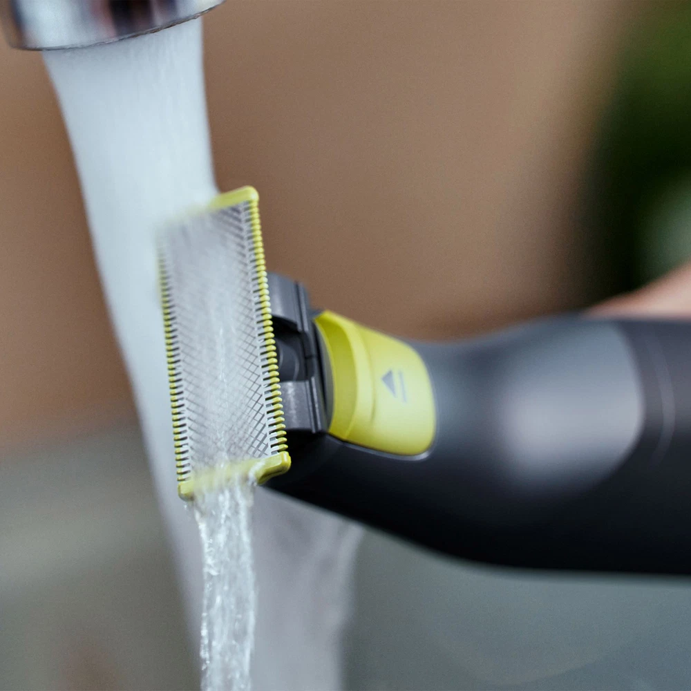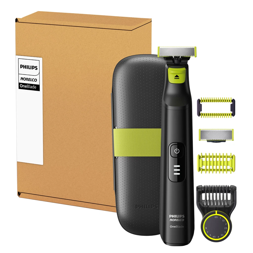 Rechargeable OneBlade Can Trim, Edge and Shave Any Length of Hair Versatile Trimming Comb with 12 Length-Settings from 0.5mm to 9mm 90 Minutes of Constant Styling Power After a 1-Hour Charge Water Resistant so Easy to Clean - Just Rinse Under the Tap Includes: 2 Blades, 1 Skin Guard, 1 Body Comb, 12-Length Comb, Travel Case