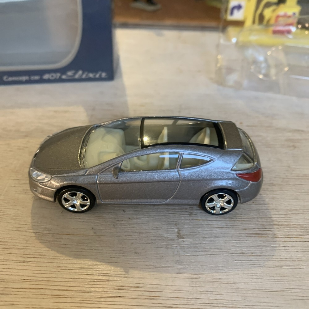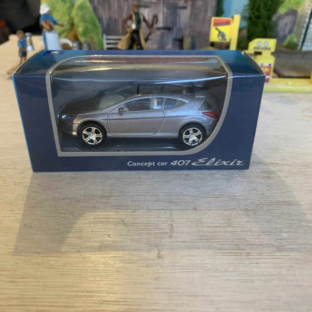 The Norev Peugeot 407 Elixir Concept in 1:60 scale is a silver diecast car toy featuring intricate details. This dealer version model comes in its original packaging, making it a collectible item for enthusiasts and fans of Peugeot cars. Perfect for display or play, this 3-inch car replica showcases the sleek design of the Peugeot 407 Elixir Concept in a miniature form, adding a touch of elegance to any diecast vehicle collection.