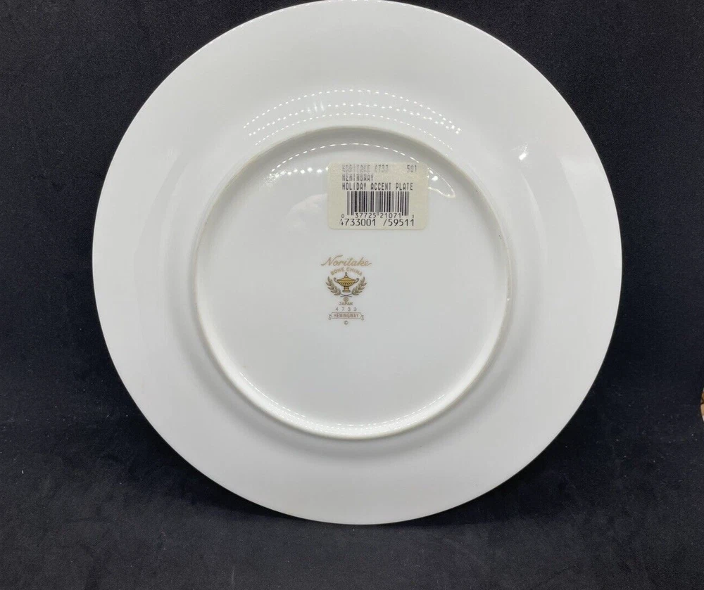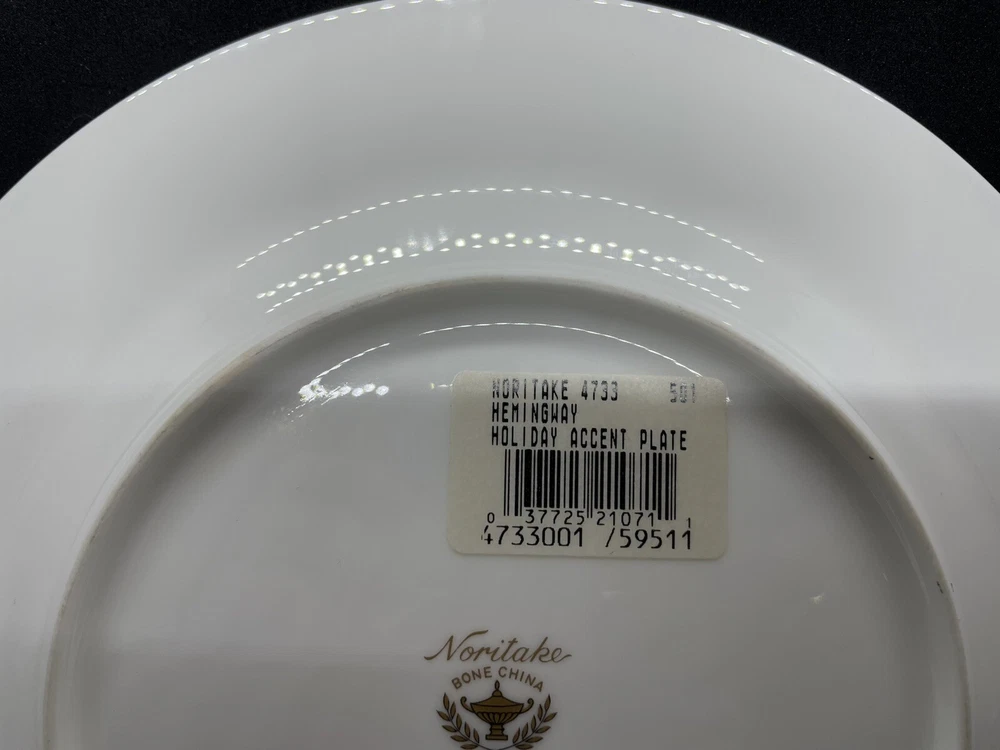 Features:Holly AccentBrand:NoritakeSeller Notes:“new with tag, no box”Occasion:ChristmasCountry/Region of Manufacture:JapanPlate Diameter:8 1/2"Color:MulticolorBackstamp:PrintedType:Salad PlateShape:RoundPattern:HemingwayMaterial:Bone ChinaTheme:Holiday