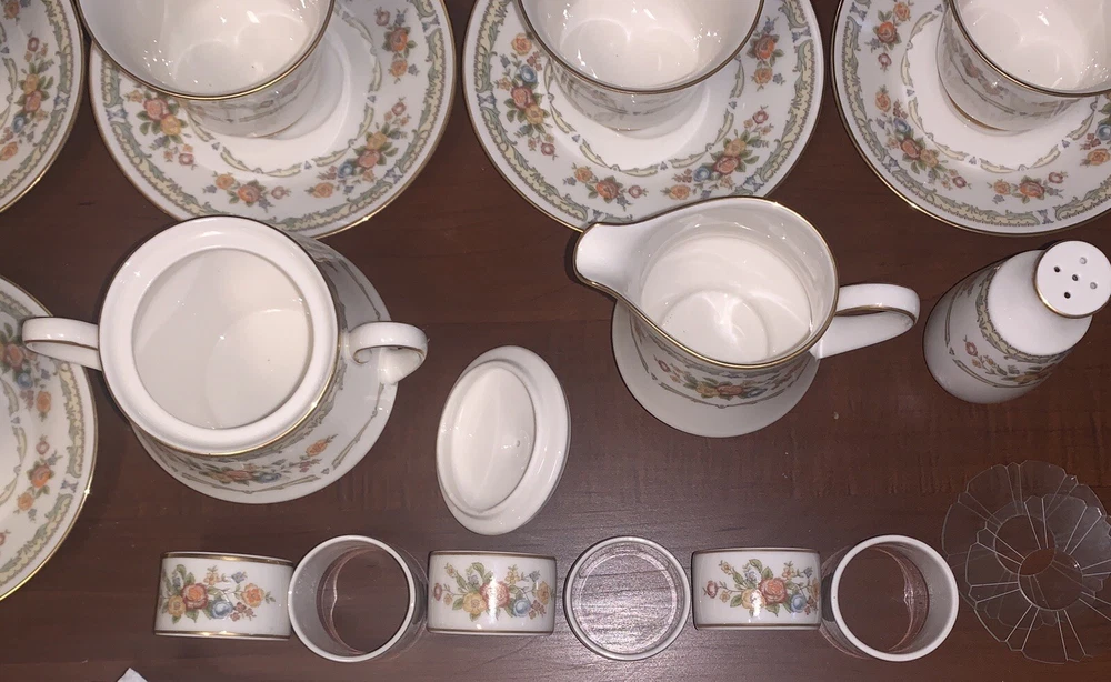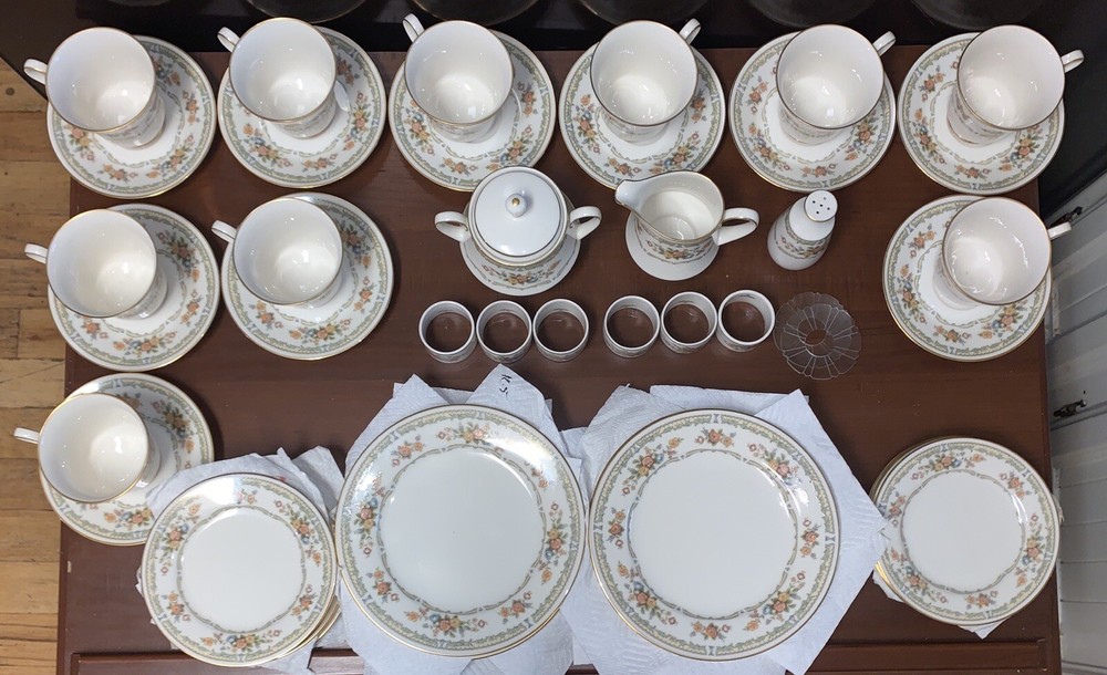 Condition is Near Mint / Excellent with minimal (if any) signs of wear consistent with age (1977 - 1985)! No chips, cracks, or repairs from Never Being Used! Previously for Display Purpose Only! Refer below for ALL Discontinued Homage by Noritake Pattern 7236 Pieces are included in offer (with Dimensions). See photos for more details. From a Pet / Smoke-FREE household. Made in Japan! Take $50 OFF with Local Pickup (N.C.)! Shipped FAST & FREE (in U.S.)! Included in Offer: • (10) Homage by Noritake 7236 Footed Tea Cups - 3 1/2"H • (10) Homage by Noritake 7236 Tea Cup Saucers - 6" Diam • (10) Homage by Noritake 7236 Salad Plate - 8 3/8"Diam • (10) Homage by Noritake 7236 Bread & Butter Plate -6 1/2" Diam • (6) Homage by Noritake 7236 Napkin Ring Set - 2"Diam • (2) Homage by Noritake 7236 Footed Sugar Bowl + Lid & Creamer Set (8 oz) - 4 1/2" / 4 1/8" • (1) Homage by Noritake 7236 Pepper Shaker w/ Stopper (5 Hole)