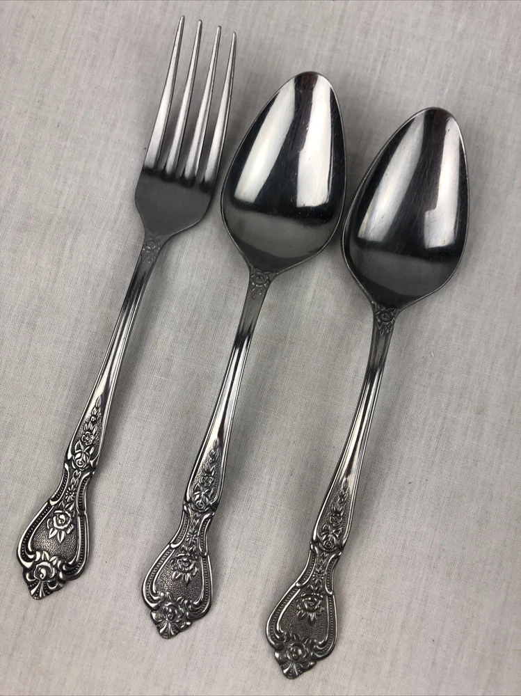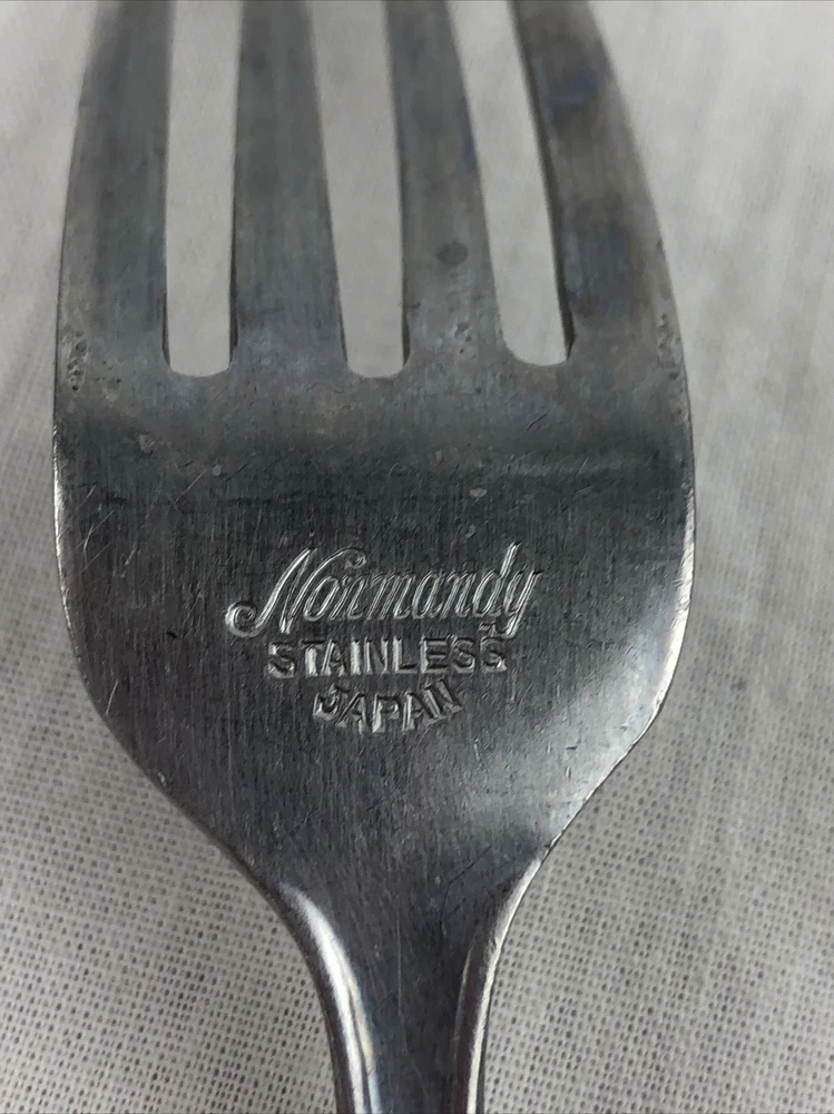 Vintage Normandy Stainless Flatware 3 Piece Lot Includes: 1 Dinner Fork 2 Oval Place Spoons Shows signs of light use and may need additional cleaning. Little spotting in places but no dishwasher or disposal damage. Overall very nice condition. Please see pictures for details as this is part of my description.