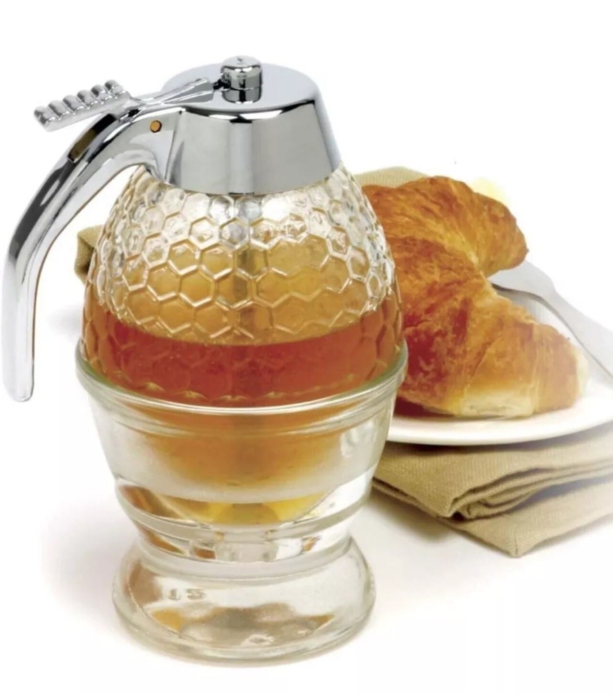 Norpro Glass Honey Pot Dispenser with Bee Hive Design 8 oz Capacity