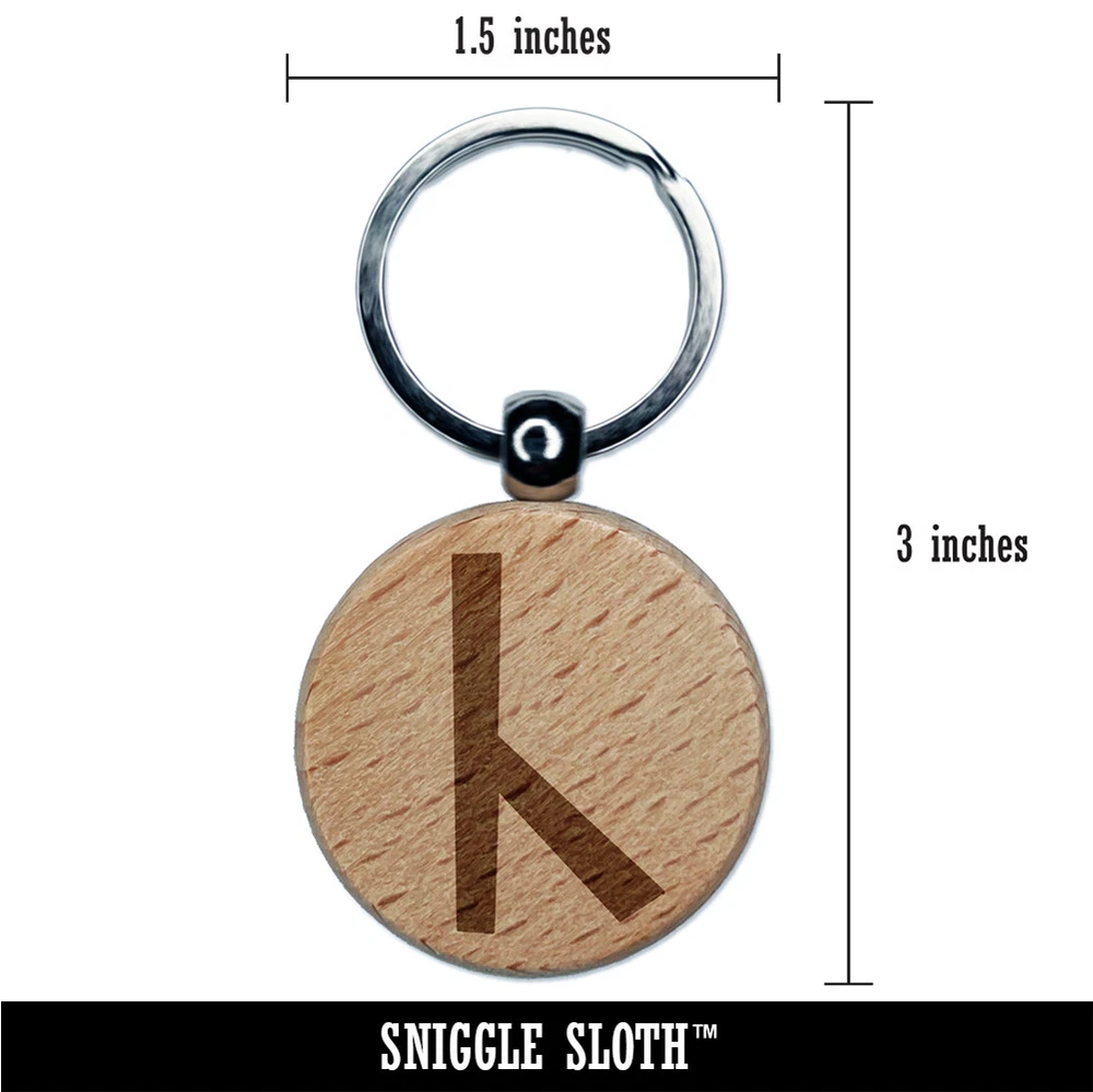 Norse Viking Dwarven Rune Letter C Engraved Wood Round Keychain Tag Charm