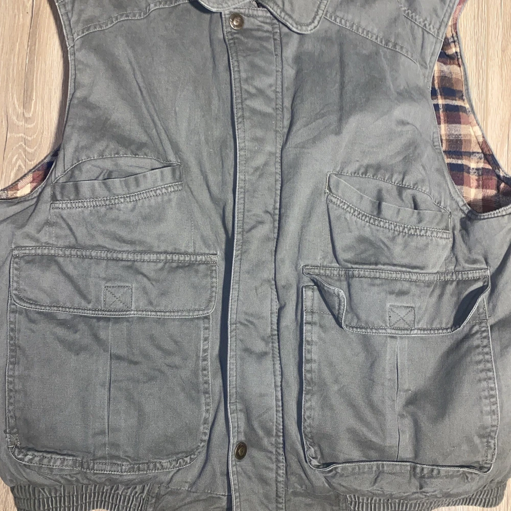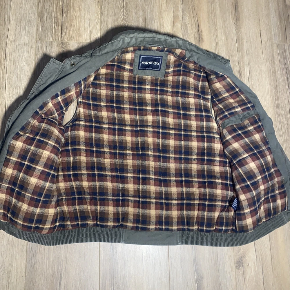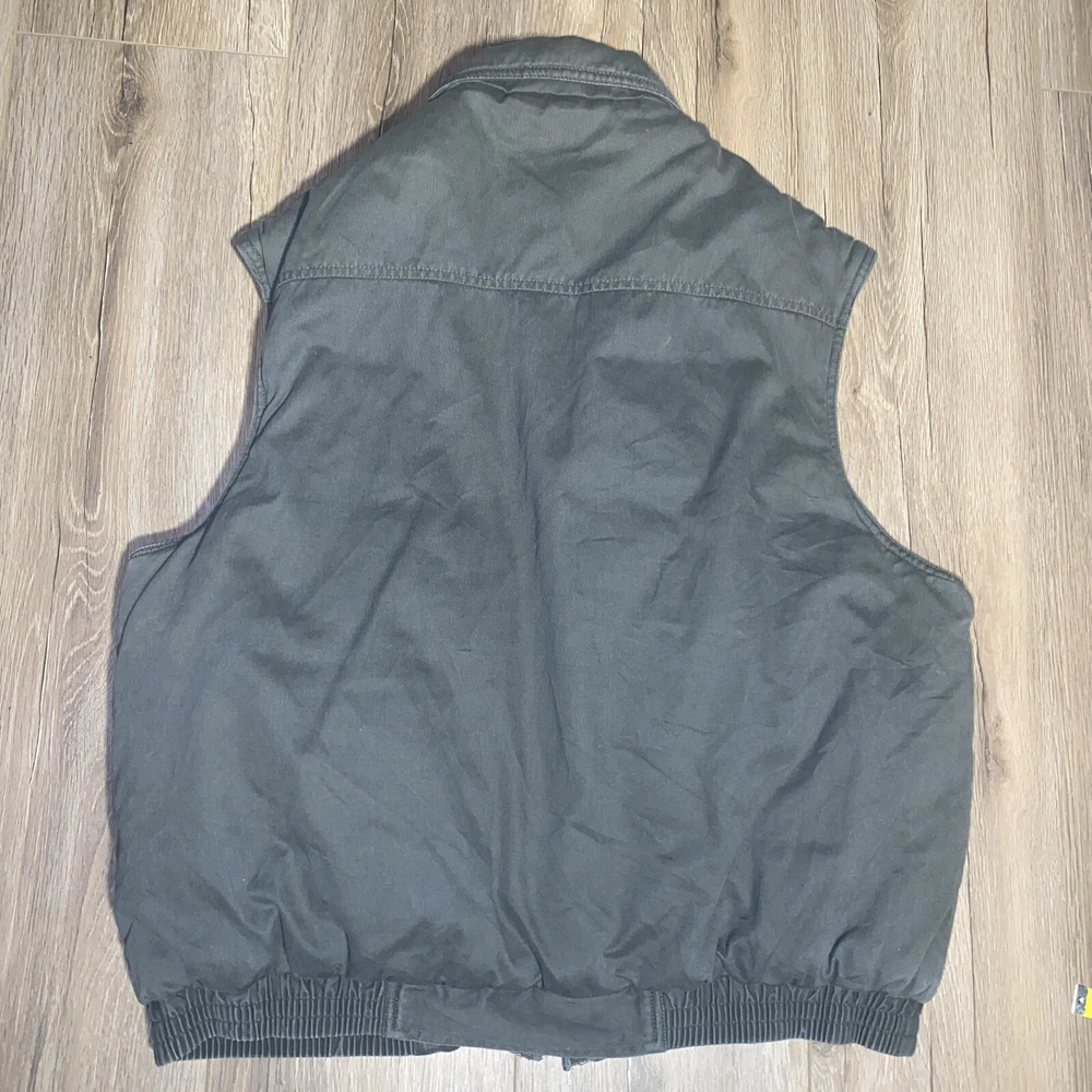 *broken zipper- unable to zip but has functioning snap buttons for closure.* Missing size tag / please note measurements when considering this vest. Typical 48in chest measurement is equivalent to X-Large. North Bay Vest Mens Sz XLarge Dark Green Inside pocket 100% cotton Hiking Fishing Gorp Core Flannel Lined Dad Grandpa Nature Outdoor Mountain In good Preowned condition- broken zipper reflected in cost Ships next day when ordered Monday thru Friday and first thing next business day when ordered on weekend or holiday. Thank you for your consideration!
