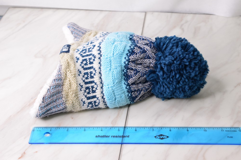 North Face Baby Fleece Ear Flap Pom Beanie 6-24M Cool Blue