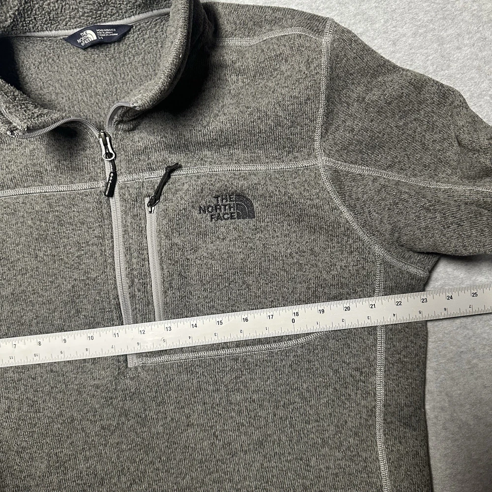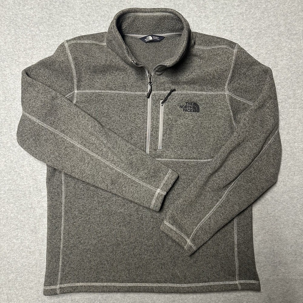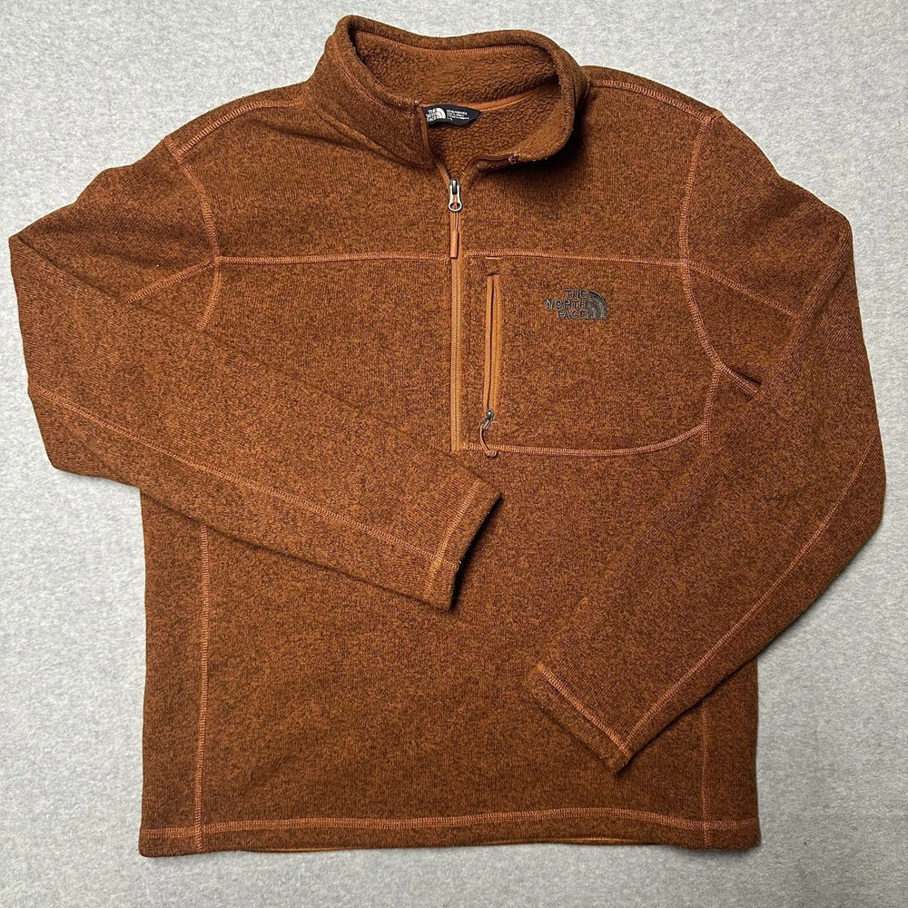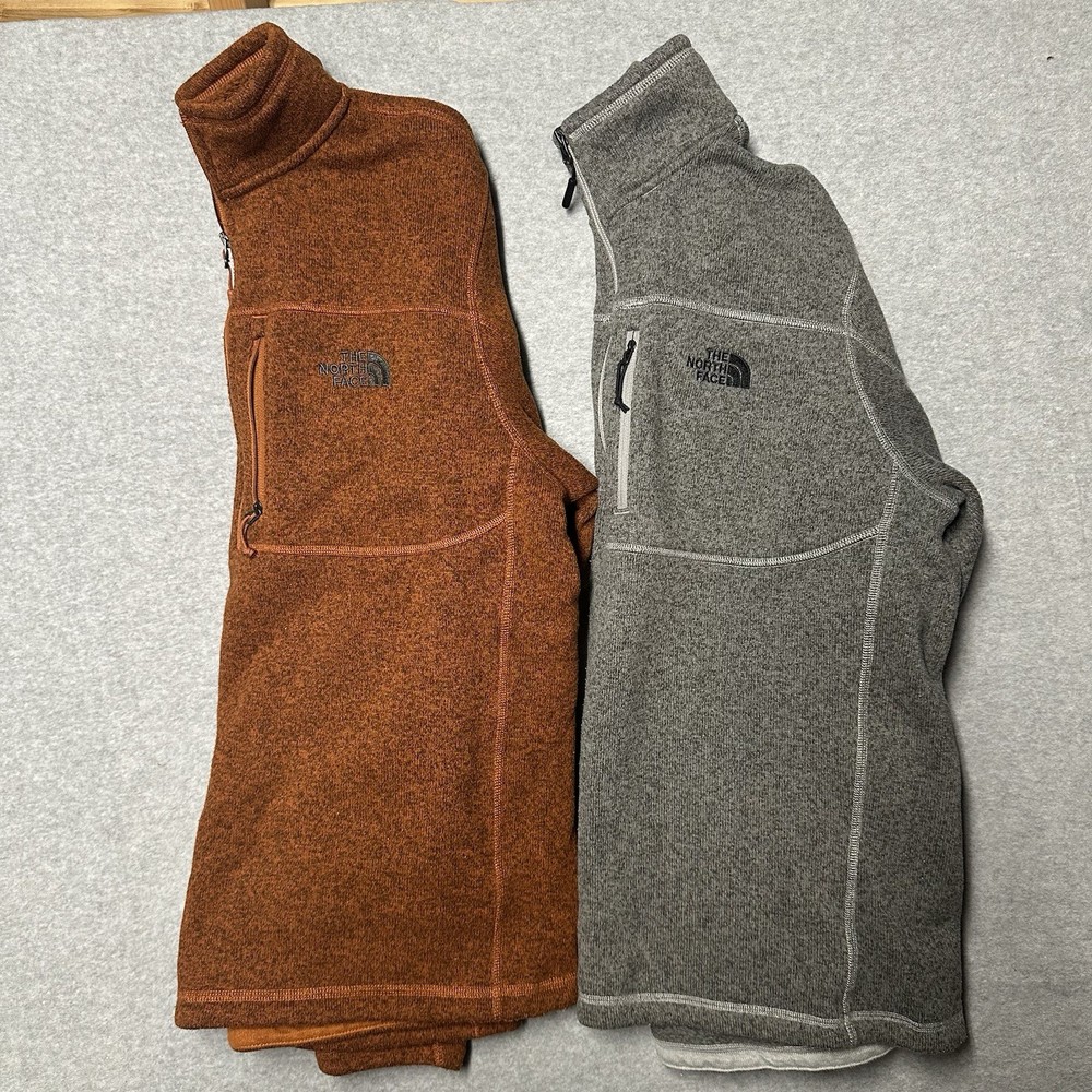 The North Face Better Sweater Men's Large Orange Gray Heather 1/4 Zip Lot of 2 is a stylish and versatile jacket with a comfortable fleece fabric and a stand-up collar. Featuring a 1/4 zip closure and multiple pockets, this mid-length jacket is perfect for casual occasions during the winter, fall, and spring seasons. The orange and gray color combination, along with the embroidered logo and zipper accents, add a touch of outdoor and sports-themed flair to the classic design. The North Face brand ensures quality and performance, making this jacket suitable for activities like walking, hiking, and running & jogging. You will receive both quarter zips that are pictured. Both in great shape with no flaws or conditional concerns.