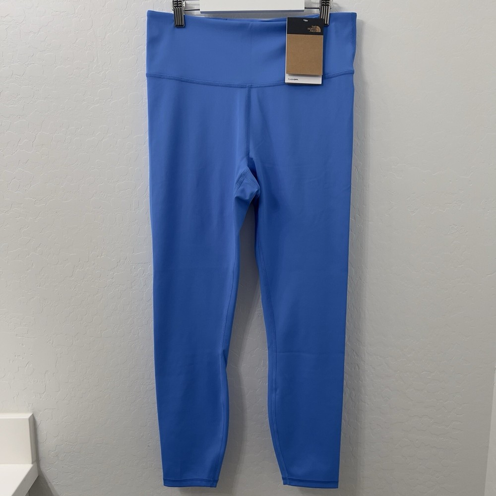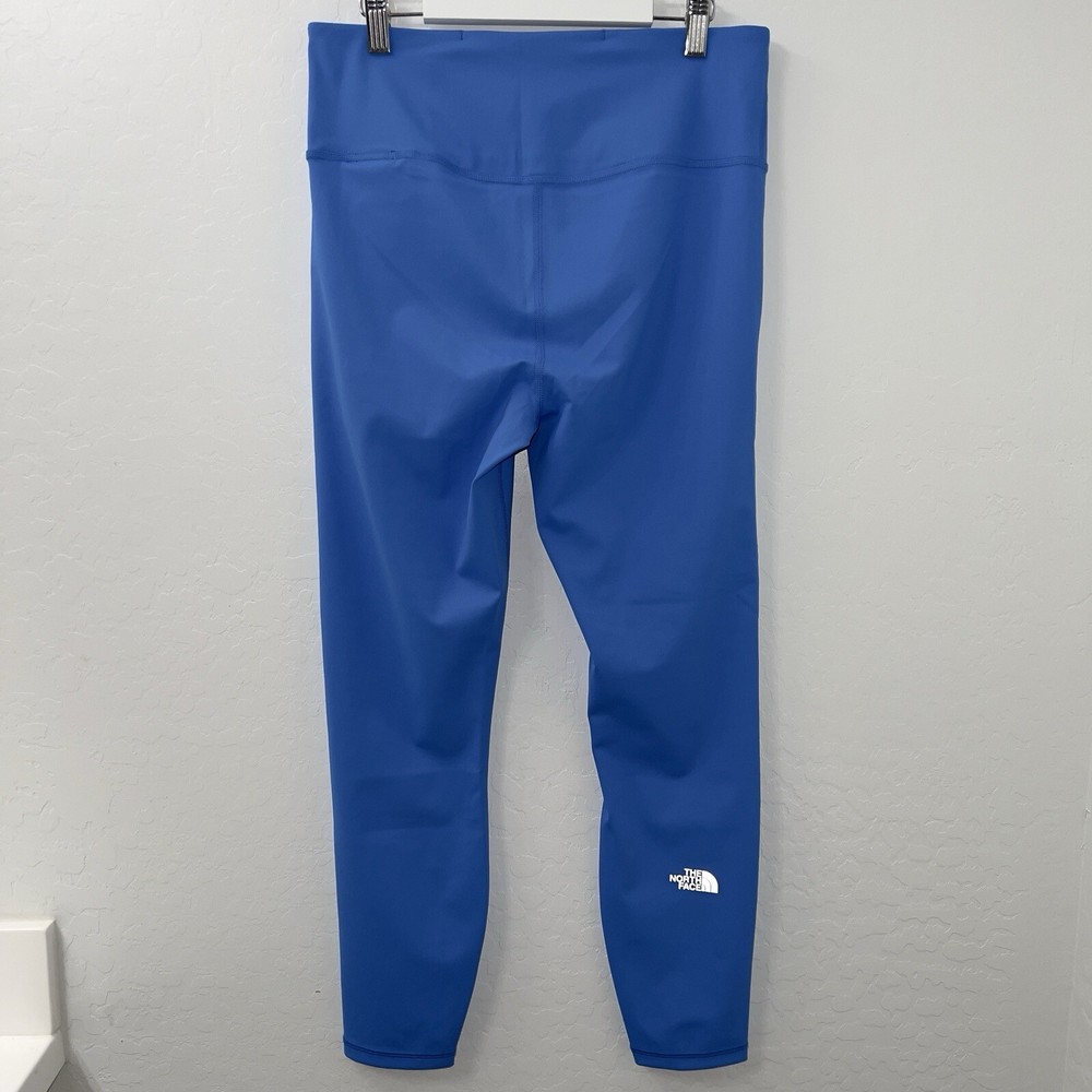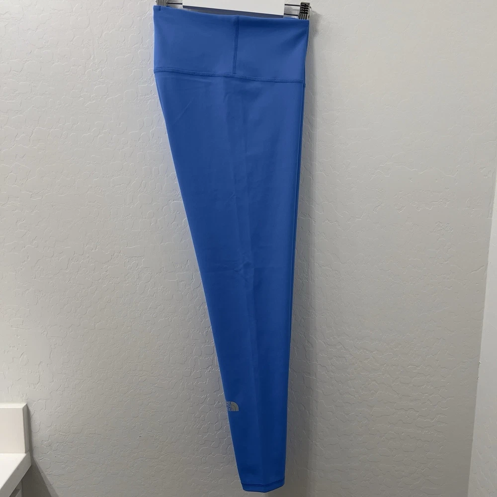 Elevate your workout wardrobe with these stylish and functional North Face Elevation 7/8 Leggings in Optic Blue. Designed for women in size large, these leggings boast a polyester blend fabric that is machine washable and quick to dry. The elastic waist and stretchy material provide a comfortable fit that is perfect for cross training or yoga. These solid-colored leggings have a 25-inch inseam and a skinny leg style that is perfect for activewear. The pull-on closure makes them easy to wear, and the blended fabric ensures that they are durable and long-lasting. Whether you're hitting the gym or running errands, these leggings are the perfect addition to your activewear collection.
