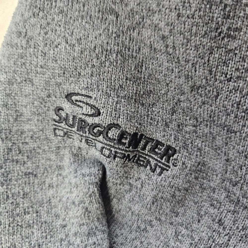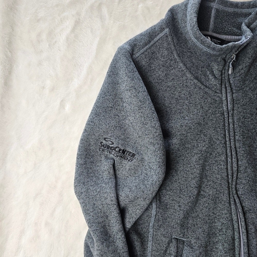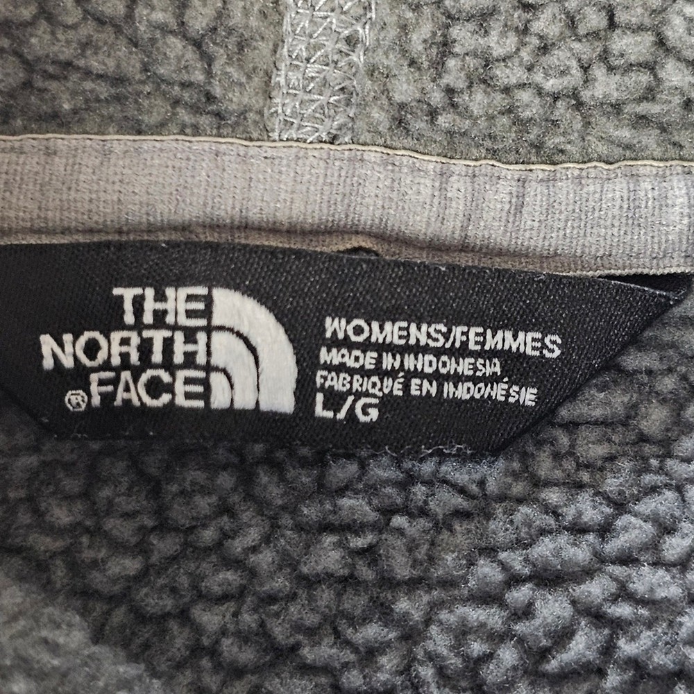 North Face Fleece Zip Sweater Gray Large Women’s Logo detail pic 4 shows logo on sleeve Fall Winter Layer Warmth Cozy Comfort Athleisure Travel vacation Preppy