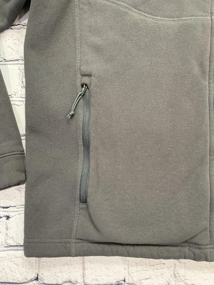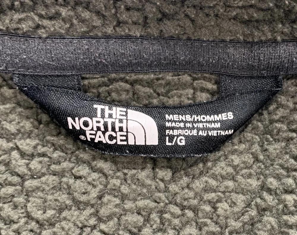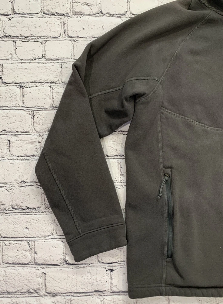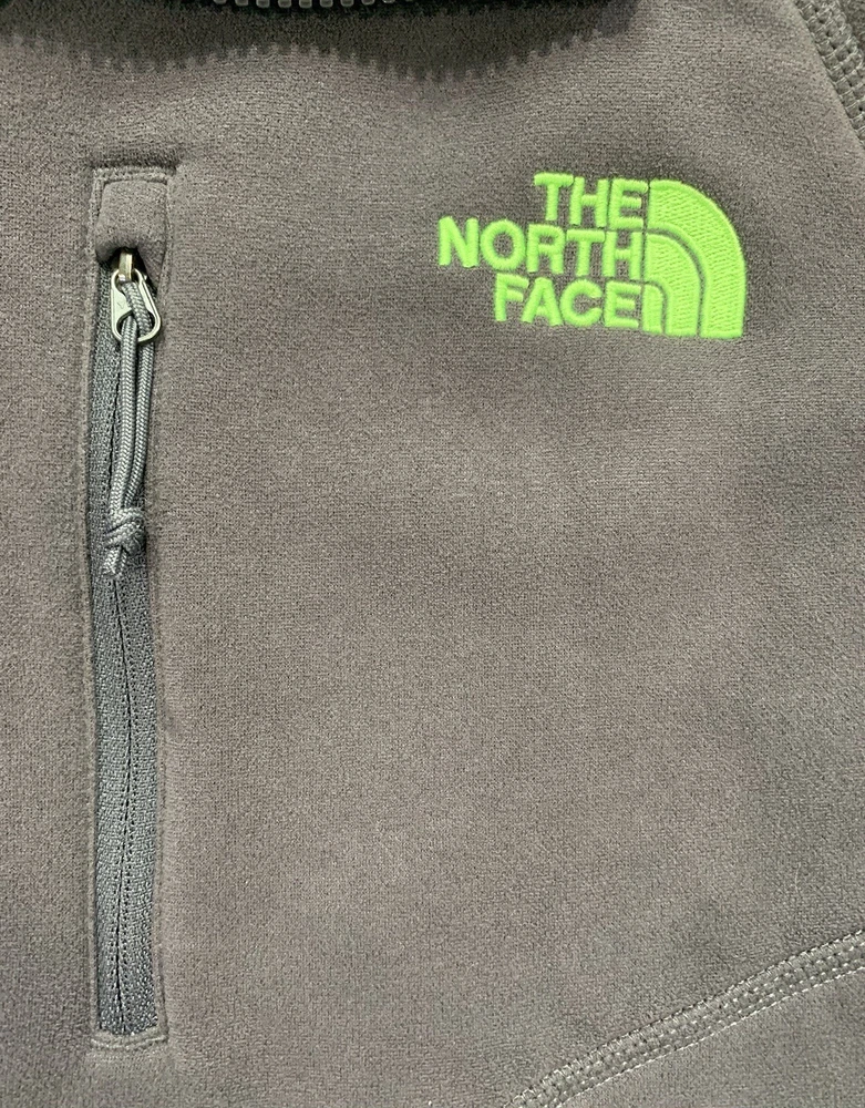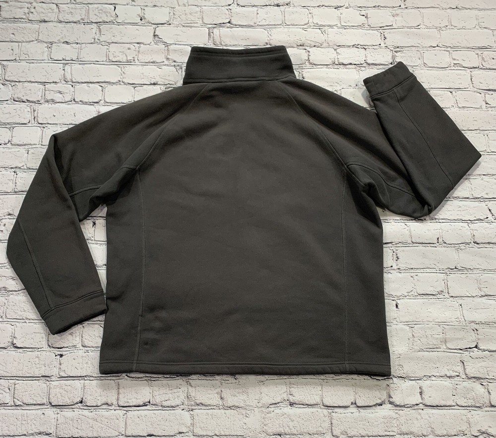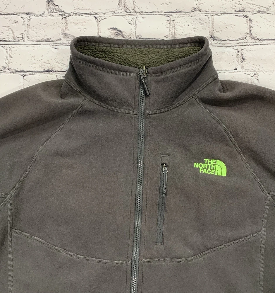 Preowned The North Face Jacket Men's Large Dark Gray And Green Zip Up Fleece Long Sleeve. Please see all pictures for details, measurements and minor flaws if any.