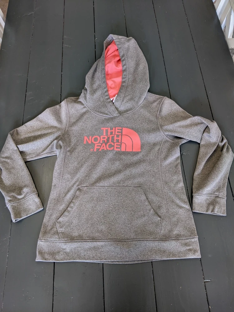 North Face Hoodie Women's Size SMALL Gray With Neon Pink. Condition is Pre-owned. Shipped with USPS Ground Advantage.