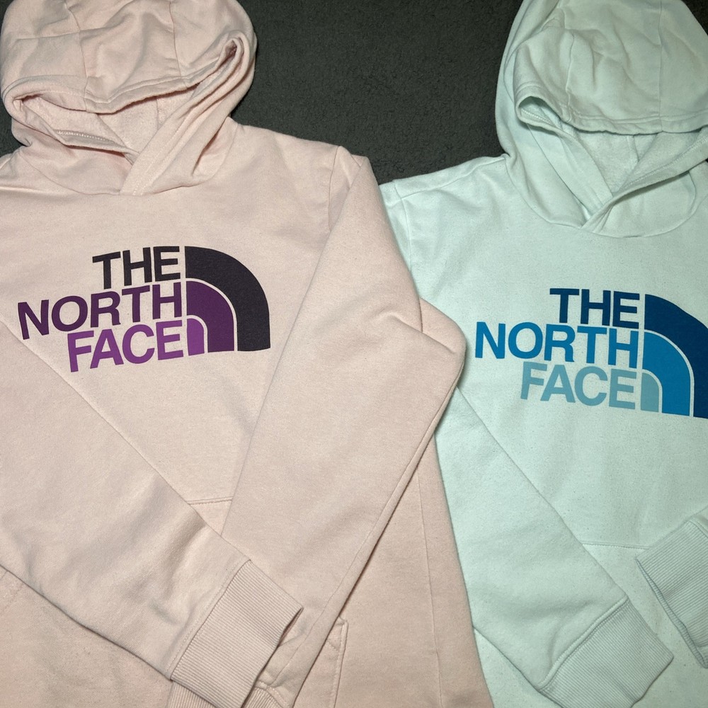 Lot of 2 The North Face Sweatshirt Hoodie Women L Logo Graphic Pink Teal Casual Both hoodies are in excellent condition, no tears or stains, size is shown in pictures. Feel free to ask any questions about this item, all of our items come from a smoke free environment.