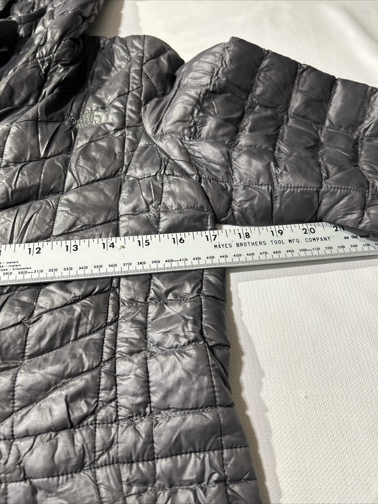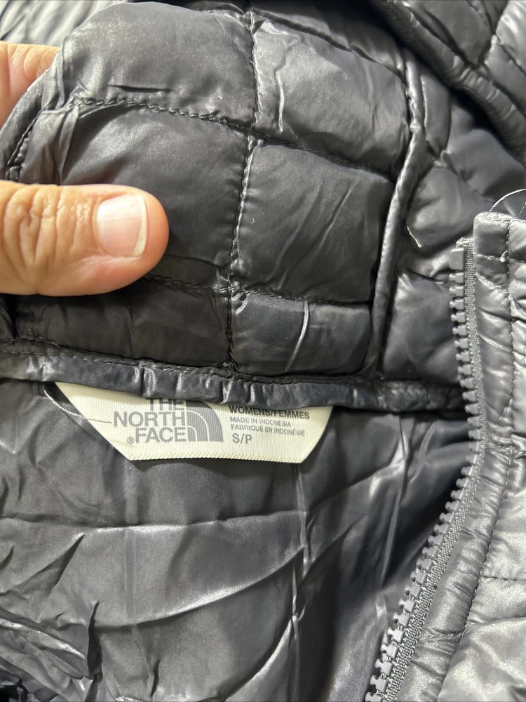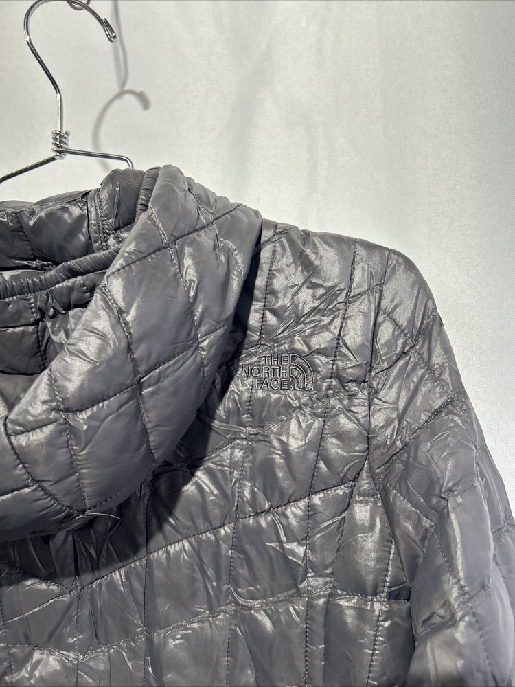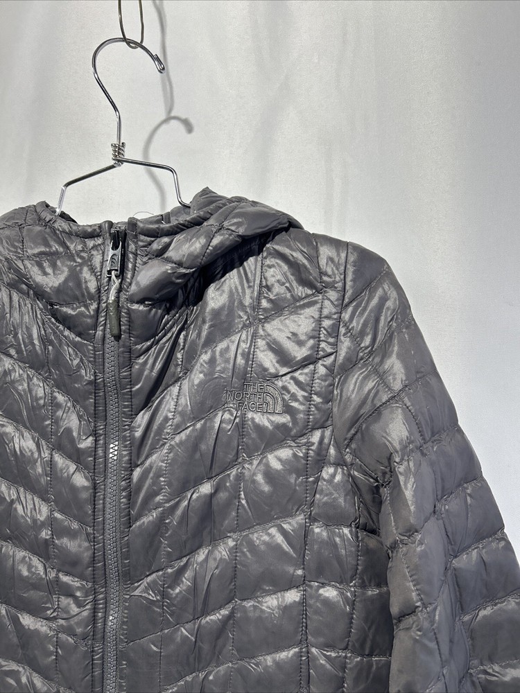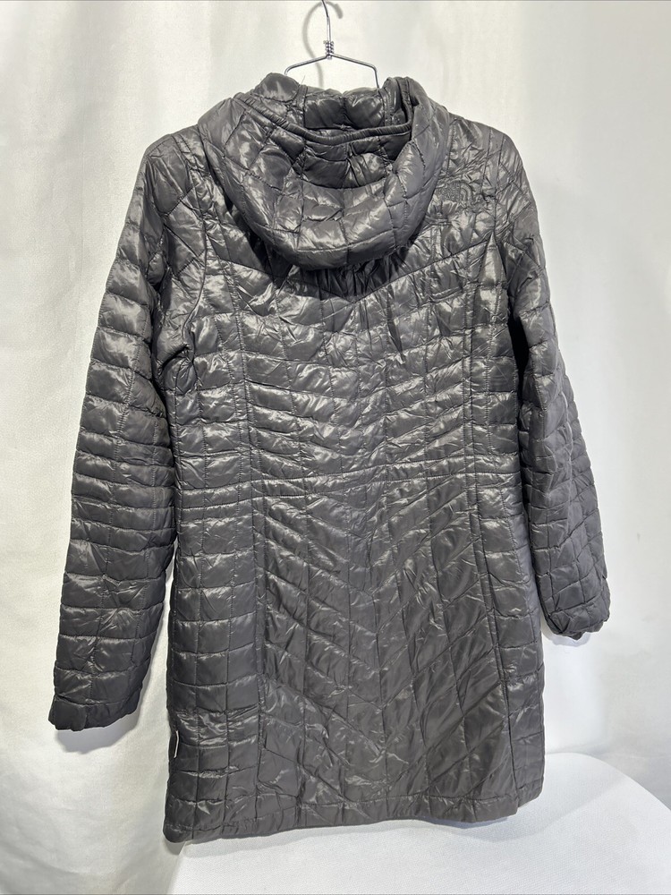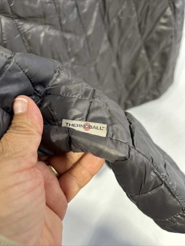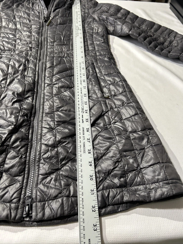 North Face Womens Jacket Small Gray Thermoball Long Puffer Parka Zip Hooded Down. F15