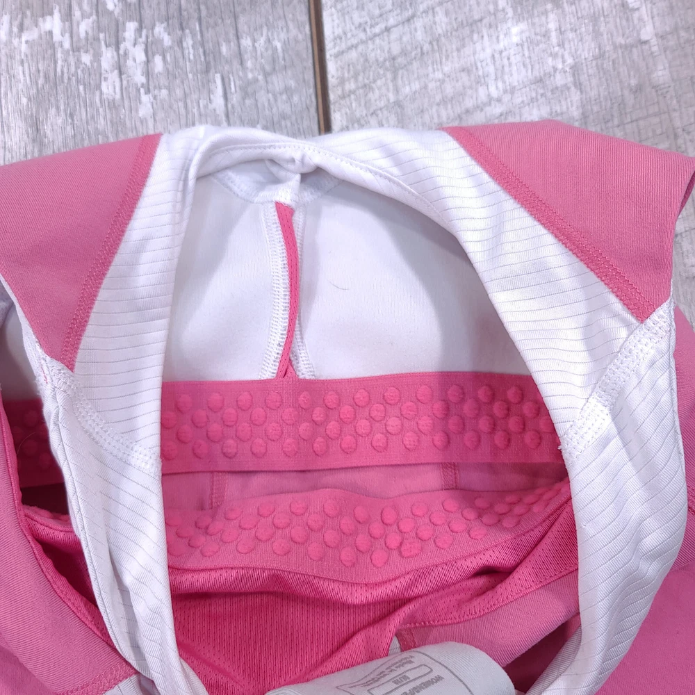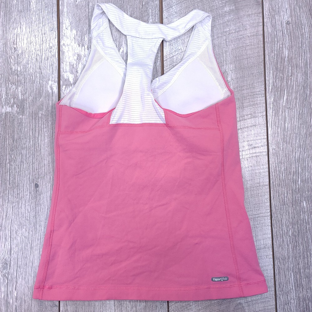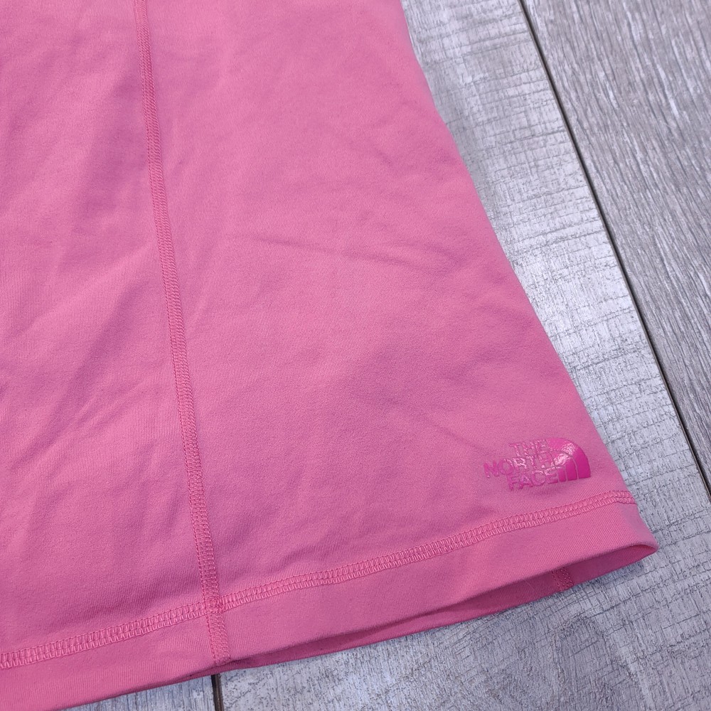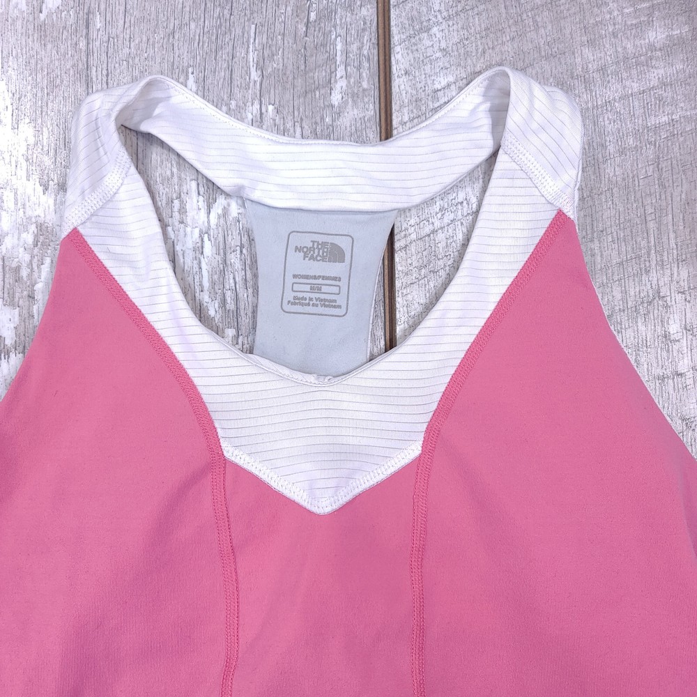 Love this North Face tank! The built-in bra is super comfy, and the fabric is lightweight yet supportive—perfect for hikes or workouts. The pink color is vibrant, and it's in amazing pre-owned condition—no flaws at all. Fits true to size (pit-to-pit 15", length 22"), and shipping was fast. Great deal for the quality! Highly recommend.
