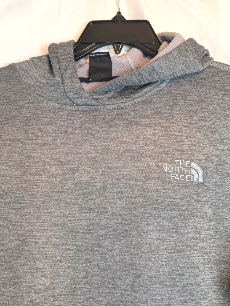 The North Face Women's Size XL Canyonlands Gray Pullover Hoodie Sweatshirt. Pre-owned but in Nice Condition. No holes or stains. Front North Face Logo. Front pockets. Soft and Stretchy. Fleece Lined. 60% Wool/22% Nylon/14% Polyester/ 4% Other Fibers. See pictures for details and conditions. Please message us with any questions. Ships with USPS Mail. Thanks for looking. Approximate Measurements - Pit to pit - 24" Shoulder (seam to seam) - 18" Top of collar to bottom of shirt - 25"