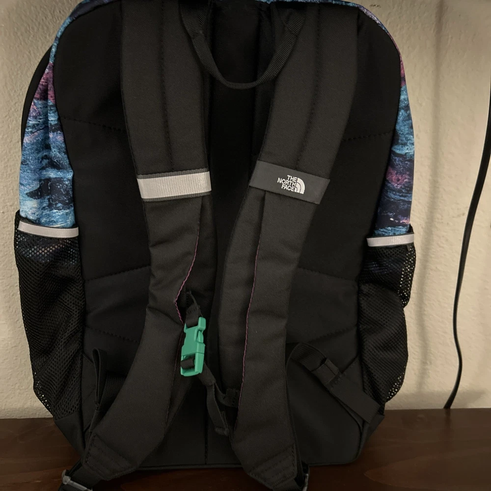The North Face Youth Court Jester Backpack in Scuba Blue TNF Multi Dye Print/TNF Black is a stylish and practical shoulder bag designed for unisex kids. Made from durable polyester material with a nylon handle/strap, this backpack features two dividers, a zip closure, and three pockets for organized storage. Perfect for backpacking, camping, and school activities, this North Face backpack combines functionality with a vibrant color design that kids will love.