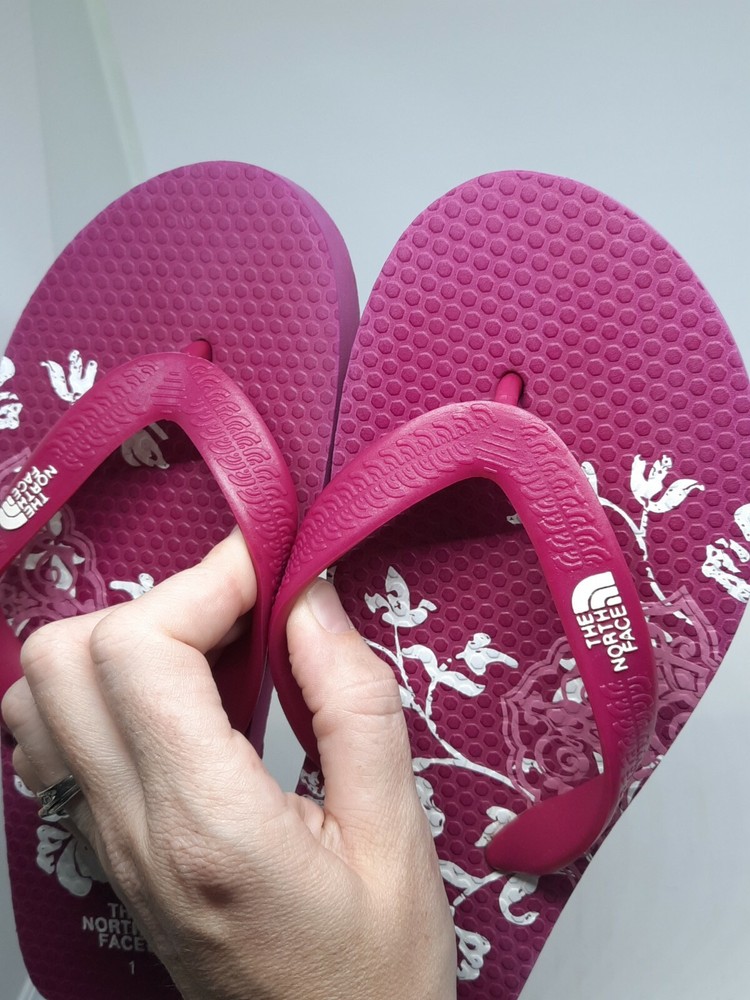 THE NORTH FACE Youth Girl Hibiscus Floral FLIP-FLOPS SANDALS SZ 1 Pink/White.