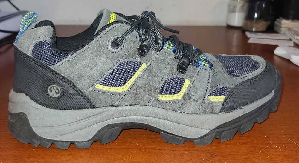 Get ready for some serious hiking with these Northside Women's Hiking Shoes! Made with a combination of suede leather and man-made materials, these sneakers are both comfortable and breathable, perfect for any adventure. The round toe and lace-up closure provide a secure fit, while the flat block heel offers moderate cushioning. These shoes are perfect for both casual wear and travel, and are suitable for Women with US shoe size 7 and UK shoe size 6. The gray and black color scheme with logo accents adds a touch of style, and the solid pattern is perfect for any occasion. So why wait? Get your hands on these Northside Youth Hiking Shoes and start exploring today!