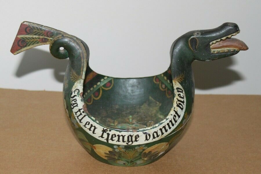 Norwegian Rosemaled Dragon Ale Drinking Bowl C. 1890 +