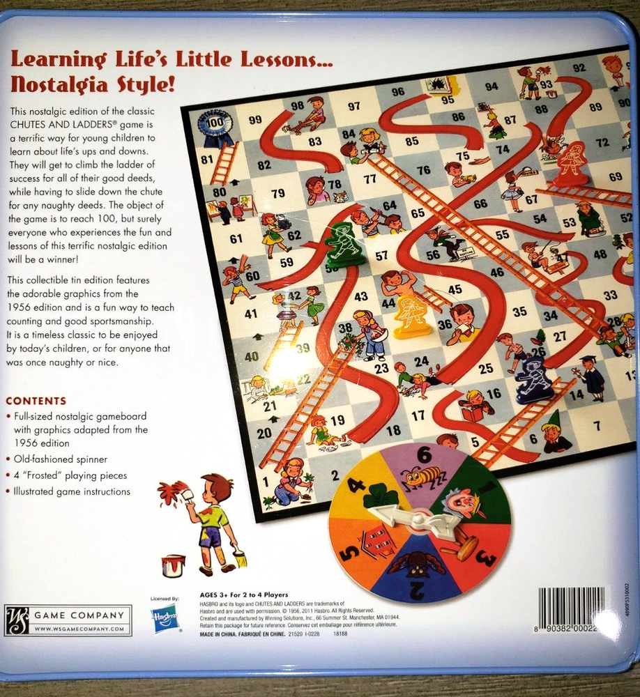Here is a LIKE NEW game of chutes and ladders in a metal tin! great for storing! there are no damages! WE DO NOT BREAK UP LOTS! WE DO NOT ACCEPT OFFERS!! WE RUN SALES DAILY! KEEP CHECKING! All of our items are from a smoke free, pet free home. we do our best to describe them as we see them. if for any reason you are not pleased with an item, please let us know. we do NOT refund s/h fees for any reason, as we cannot get it back from the post office. We ship monday thru friday, within 24 hours of rec'g payment. if you do not get your package in a day or two, PLEASE give it 7-10 days to get to your door. the USPS has been slowing down, and it is out of our control how long it takes to get to you. we DO ship EVERY day, as stated above. We do combine shipping for up to and including 10 items, OR 10 days from your first win. example: you win an item on the first, we expect payment no later than the 10th--even if you win auctions on the 3, 4 or 5th. keep this in mind when bidding. we will combine up to 10 auctions. please do NOT send us a list asking how much shipping will be IF you win 10 auctions. we will NOT know the weight until all items are won, and weighed at that time. Need it fast? we ship every weekday!