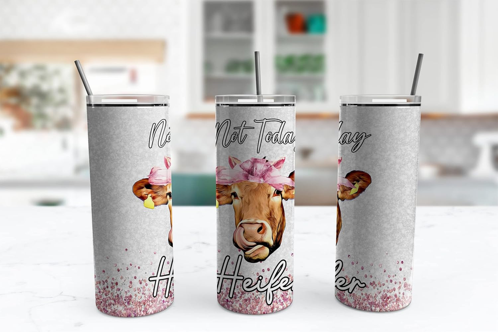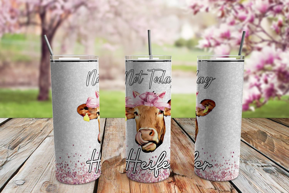 Not Today Heifer 20Oz Skinny Tumbler Stainless Steel Travel Mug with Lid and Straw