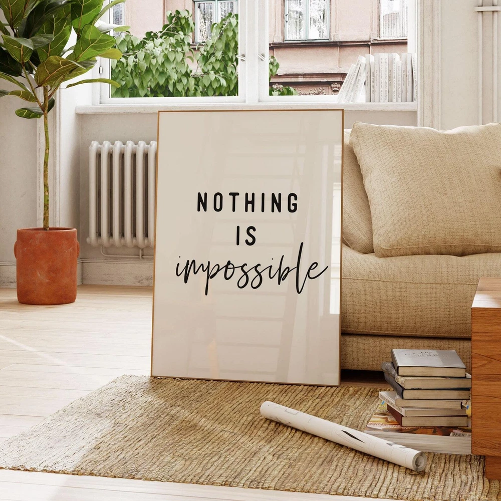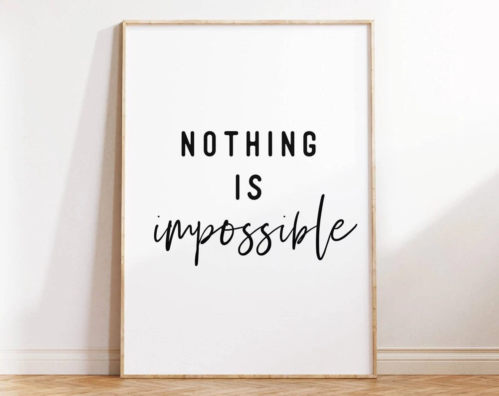 Nothing Is Impossible Quote Print Motivational Wall Art Positive Vibes Poster Printable Quotes Motivation Wall Decor Material: Premium luster photo paper Print type: Inkjet printing One side printed + The finish provides the highest possible resolution and color saturation + Lasts up to 200 years in color and 400 years in black-and-white + Printed on high-quality resin-coated photo base paper medium + Posters can be hung with double-sided tape, tacks, or framed + Hand washing with a gentle cry cloth is recommended for extended durability I will hand select the best choice of paper for your chosen design to ensure top quality results for a beautiful, bright and luxurious print. All prints are sealed in cellophane slips for protection during transportation, and are shipped in a protective cardboard envelope.