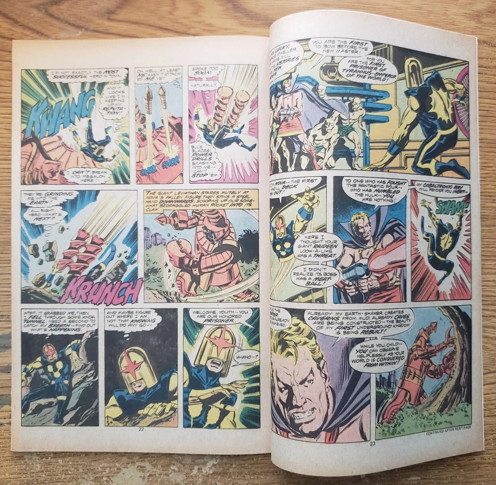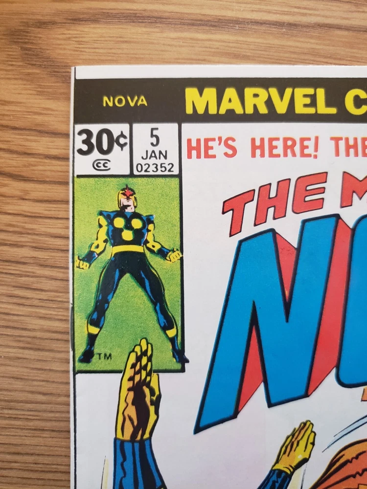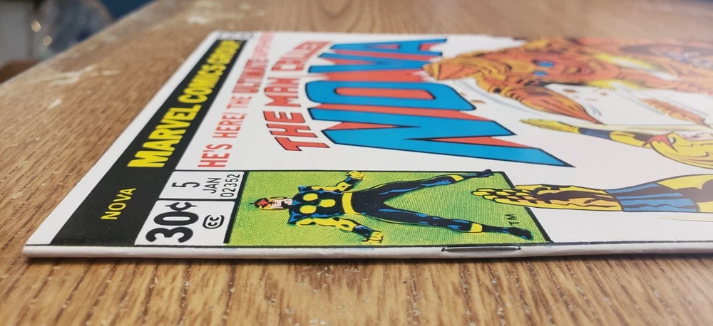 Era: Bronze Age (1970-83) Features: First Printing, 1st Edition, Boarded, Dust Jacket, Vintage Paperback Story Title: Evil Is The Earrth-Shaker! Issue Number: 5 Series Title: Nova Vintage: Yes Intended Audience: General Audience Universe: Marvel (MCU) Format: Softcover Type: Comic Book Cover Artist: Various Superhero Team: Nova Corps, New Warriors Publication Year: 1972 Artist/Writer: Various Personalized: No Language: English Style: Color Tradition: US Comics Inscribed: No Genre: Action, Adventure, Cosmic, Superheroes Publisher: Marvel Comics Grade: 9.4 Near Mint Signed: No Character: Nova (Richard Rider) Unit of Sale: Single Unit Country/Region of Manufacture: United States