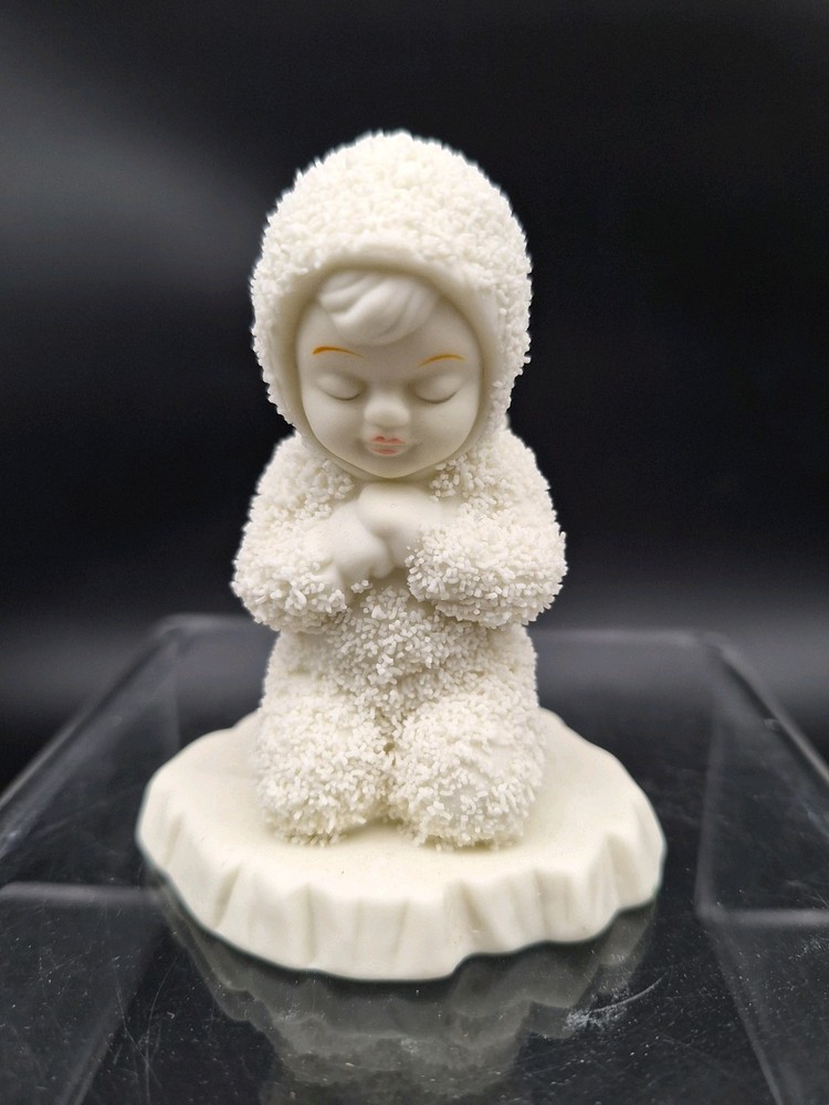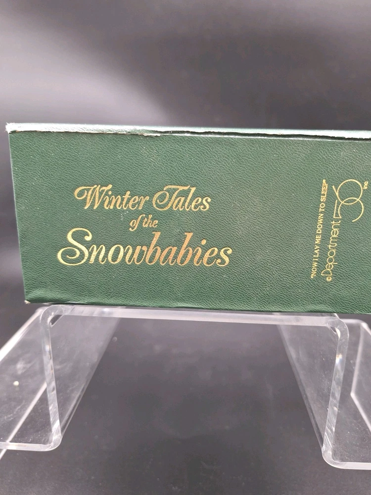 The "Now I Lay Me Down To Sleep, Winter Tails Of The Snow Babies" figurine by Department 56 is a charming and collectible piece perfect for winter enthusiasts. Made of porcelain and featuring a beige color with a snow pattern, this figurine captures the essence of the season. With its winter-themed design and adorable Snow Babies characters, this figurine is a nostalgic addition to any holiday or seasonal collection, showcasing the brand's quality craftsmanship from the 1980s.