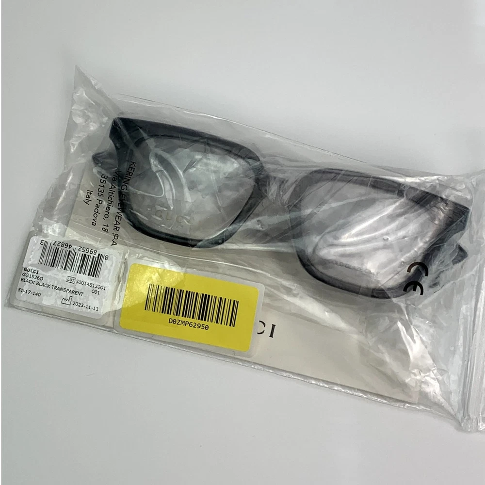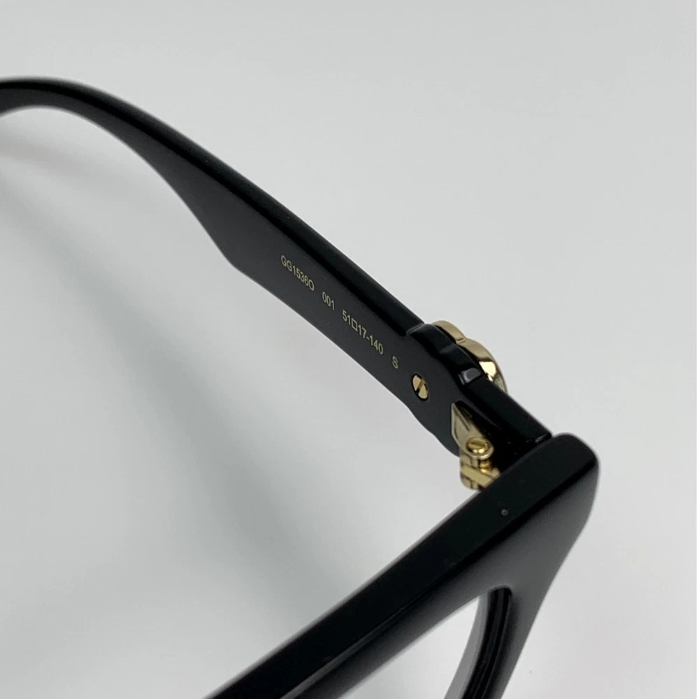 The Gucci GG1536O 001 eyeglasses feature a sophisticated cat-eye design crafted from high-quality injected plastic in a sleek black finish. This frame offers a polished look suitable for various face shapes. Material: Injected Plastic Color: Black Shape: Cat-Eye Lens Width: 51 mm Bridge Width: 17 mm Temple Length: 140 mm These eyeglasses are designed to accommodate prescription lenses, allowing for customization to your visual needs. The cat-eye shape adds a touch of elegance, making them suitable for various face shapes and personal styles.