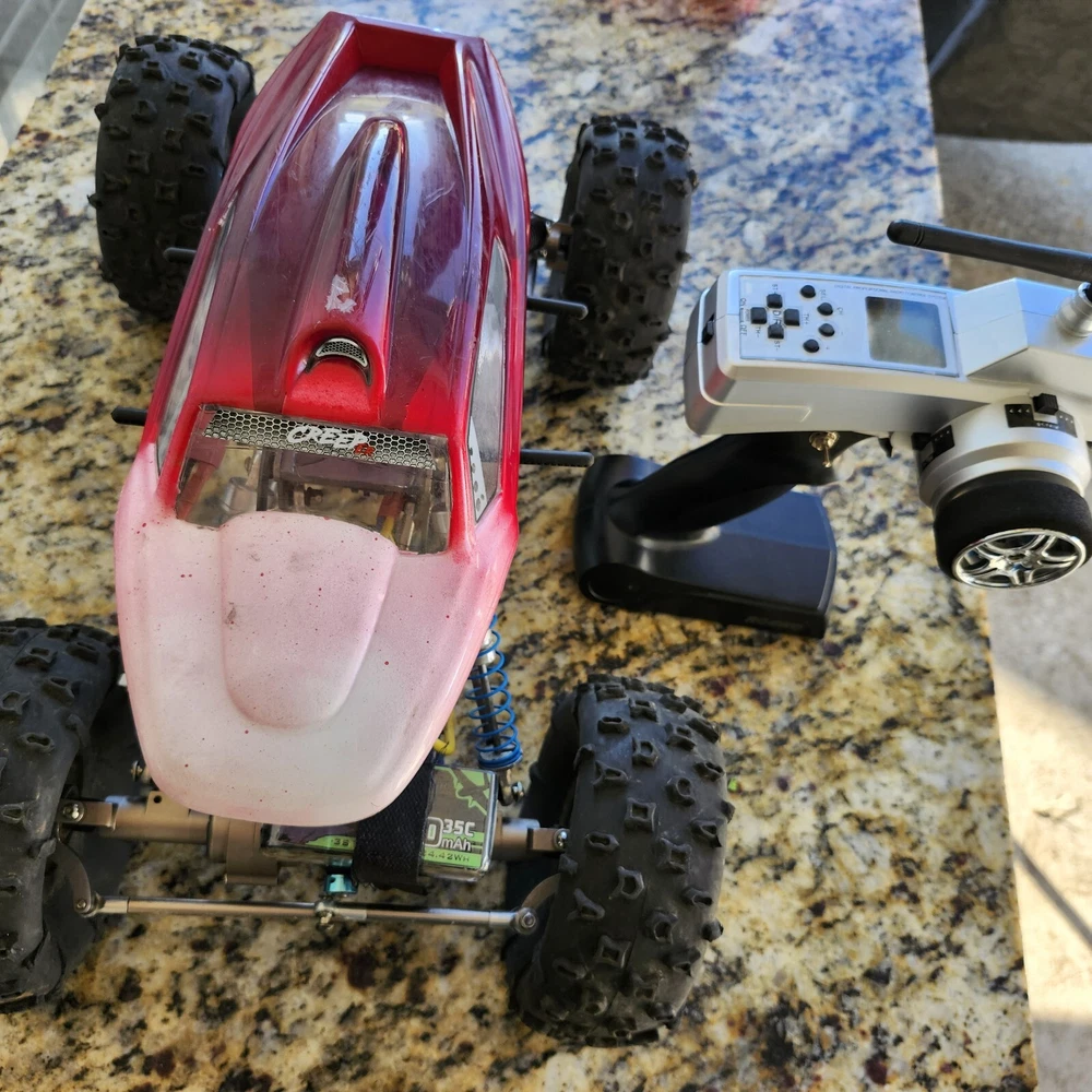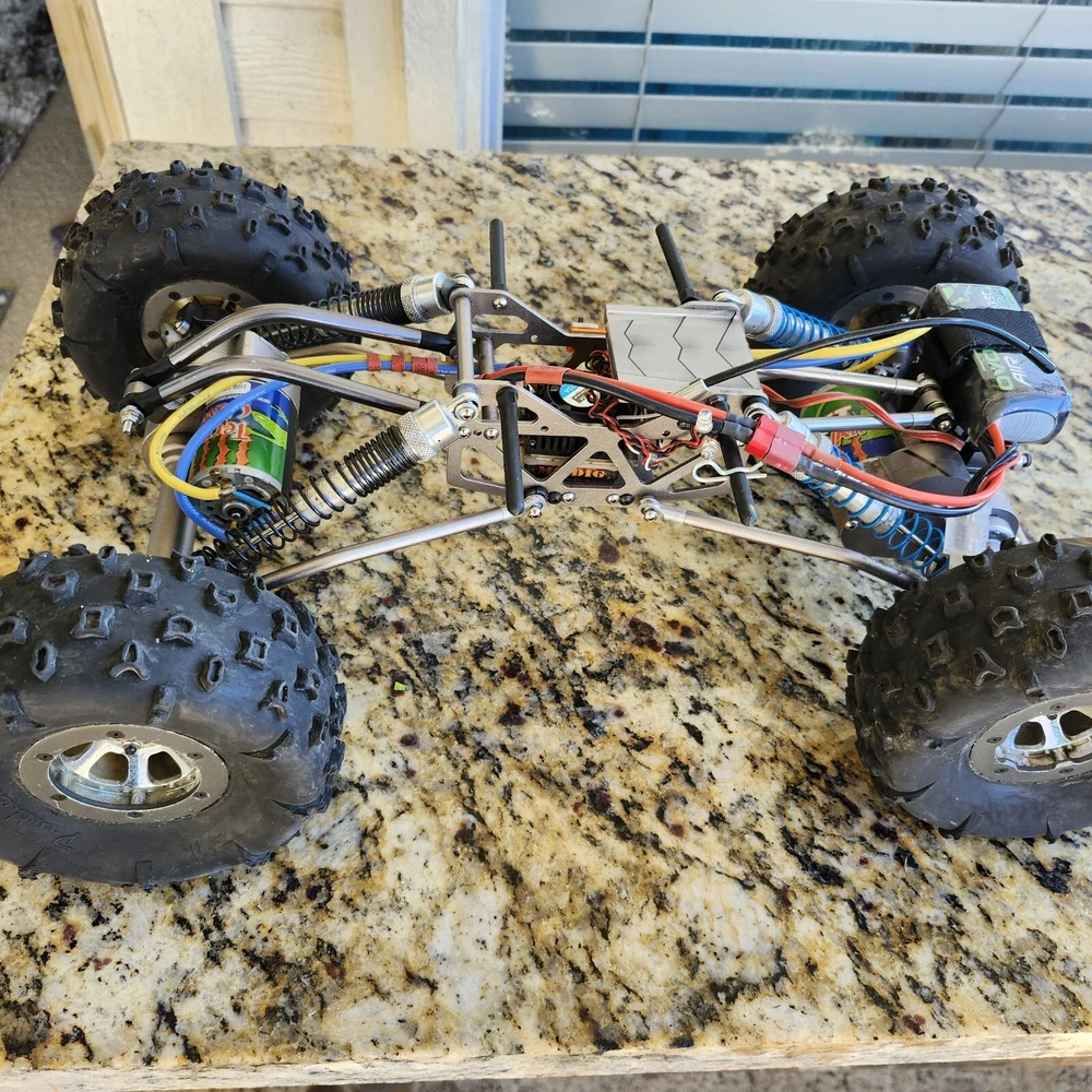 Pro comp.Rock Crawler motors on axles m2 dig system front and rear axles lock each of controller with red and blue light indicators on control switch exellant condition comes as pictured rtr axial body 4wd remote control and reciver binded and ready also 3 cell lipo battery included ( just need a charger) panther tires super soft foams on losi comp wheels...best for experienced enthusiasts all metal axles 55 novak brushed motors crawls incredibly well almost amazing event winning on lake rock lightly used very rare in exellant condition.great collection item. Free shipping lower forty eight only please.