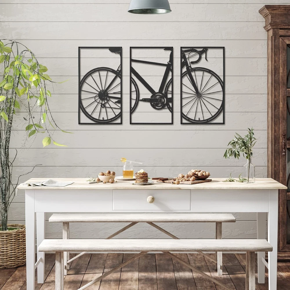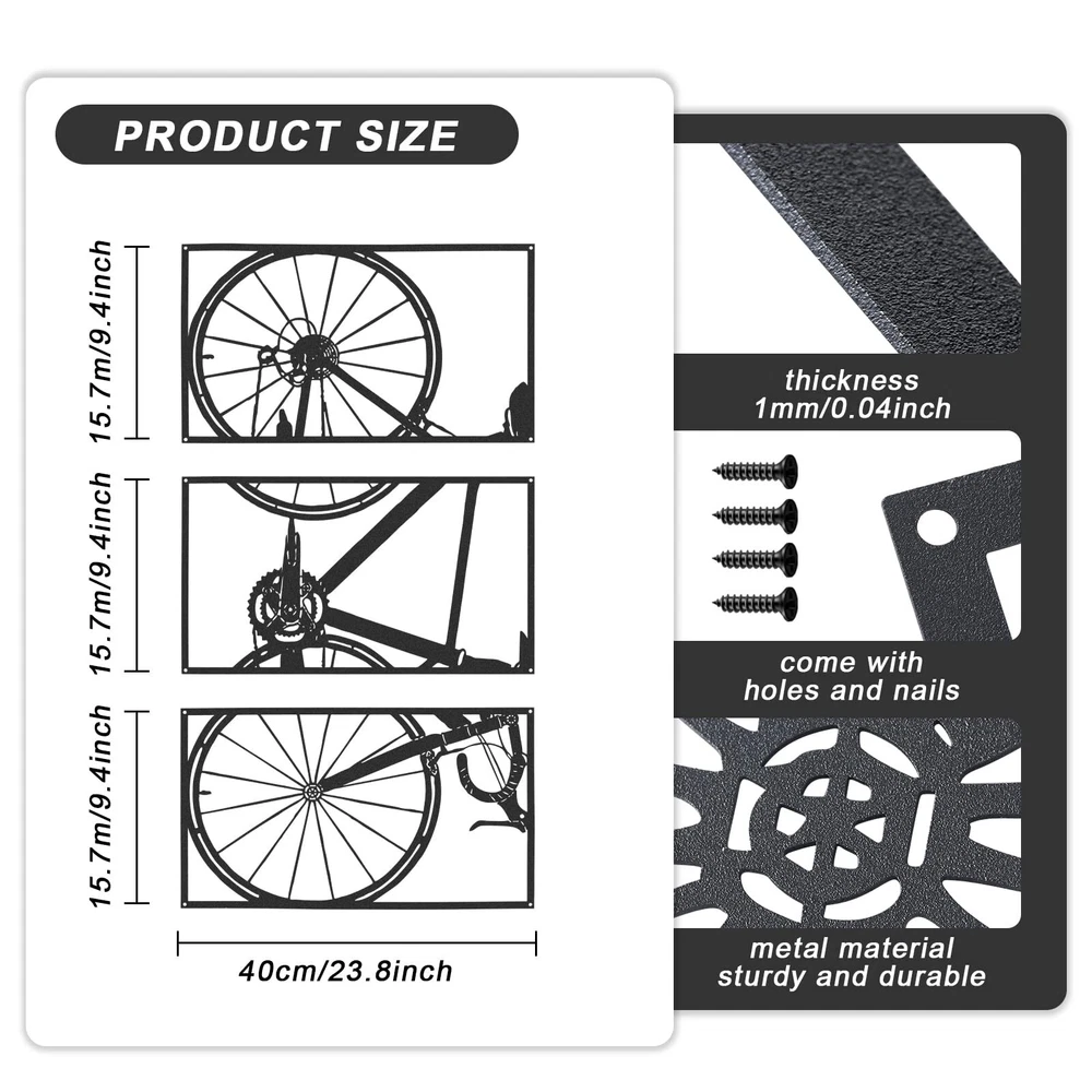Nuenen 3 Pieces Metal Bicycle Wall Art Vintage Bike Metal Wall Art Decor Antique Style Bicycle Wall Art Black Metal Wall Decor Home Decoration Bedroom Living Room Decor Housewarming Gift Product Details Product Dimensions: 15.7 x 9.4 x 0.01 inches Item Weight: 1.34 pounds Manufacturer: Nuenen Country of Origin: China Item model number: SIN-Nuenen-305443 Date First Available: March 8, 2023 Package Contents: you can get 3 pieces of outdoor bicycle signs for porch in this package, they are mainly designed in a black color, classic and eye catching, full of a sense of antique style, to meet your decorative needs in your daily life Solid and Reliable Material: our bicycle metal wall art is made of metal material, lightweight but sturdy, reliable and solid, exquisite in workmanship, thick and firm, not easy to rust, break or deform, to facilitate your usage Easy to Hang and Install: there are 12 pieces of screws in this package, our bicycle door sign has small holes around it, you can directly hang it on the wall, fireplace, door and so on, not taking up much time, easy and convenient Appropriate Size: this metal bicycle sign measures about 15.7 x 9.4 inches/ 40 x 23.8 cm, lovely and eye catching, suitable and compact, which can match various home decoration styles, to add more color and fun to your home and kitchen Show Your Charms: this metal bicycle art for outside is proper for various occasions, such as home, living room, restaurant, shop, garden, office, bedroom, patio, fence, hallway and so on, interesting and funny, giving you harmonious and captivating visual effects Features: Rustic bike design: Our black bike sign is designed in the shape of a bike, novel and elegant, full of rustic touch, which can easily brighten up your wall and catch your guests' attention. Fun of sharing: You can send these metal bike signs for outside to your friends, parents, colleagues and those people who like to ride bicycle, which will express your care and love for them Specifications: Material: metal Main color: black Size: about 15.7 x 9.4 inches/ 40 x 23.8 cm Package includes: 3 x Metal signs outdoor Notes: Manual measurement, please allow slight errors on size. The color may exist a slight difference due to different screen displays.