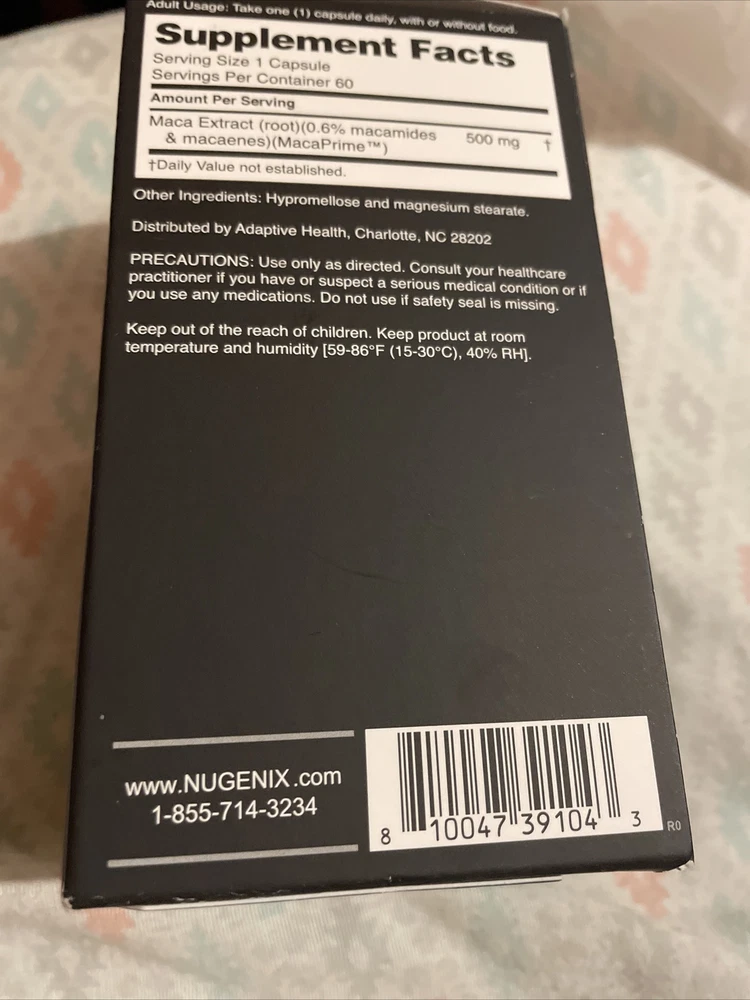 Nugenix Essentials Maca Root 500mg 60Caps Exp 05/25.