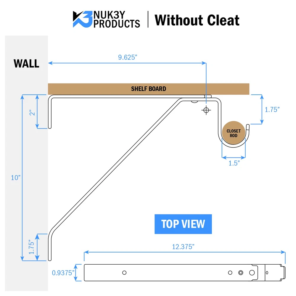 Projection: 12-1/4” from Mounting Surface Complete with Screws Adjustable shelf bracket Available in White & Black Finish See Spec image for measurement details