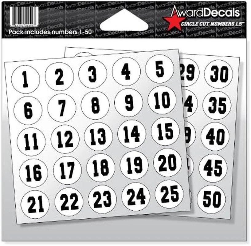 Store New Arrivals Add to Favorite View Feedback Contact Number Stickers for Helmets Black on White (Football, Baseball, Softball, Hockey, Lacrosse, Etc.) 1-50 the Original Premium 20Mil Thickhelmet Decals M Ade in the USA since 1976 Description Style Custom Number of Items 50 Pattern Circle Cut Numbers 1.5" Country of Origin USA Theme Number Number of Pieces 50 Special Feature Heavy duty Surface Recommendation Plastic Material 20mil Laminated Vinyl Age Range (Description) Adult Finish Type Powder coated Manufacturer , Inc. Reusability Single Use Item dimensions L x W x H 1.5 x 1.5 x 0.02 inches Indoor/Outdoor Usage Outdoor Water Resistance Level Water Resistant Item Weight 2 ounces Target Audience Adult Football Players Color Black on White Item Form Sheet Shape Circle Cut Recommended Uses For Product Sports Is Discontinued By Manufacturer No Product Dimensions 1.5 x 1.5 x 0.02 inches 2 Sheets = 1-50 Circle Cut Numbers per Package 1.5" Circle Cut Black Number on White Circle 20mil Heavy Duty Vinyl Enough Numbers to Number Helmets 1-50. ABOUT US We offer the best prices around on high quality products. Our E-store includes media such as books, movies, music and games while offering electronics, toys, sporting apparel, clothing, tools, general home, garden items and more. SHIPPING We are always working hard to ensure your package arrives as soon as possible. Please understand that some factors like weather, high postal traffic, and the performance of shipping companies are outside of our control. We offer free shipping to the lower 48 states and ship within 2 business days of payment, usually sooner. We do not accept P.O. Boxes. Please provide a physical address. RETURNS We offer a 30-Day Return Policy on items which you are not completely satisfied with. You have the option for a full-refund or an exchange of the item. No returns are available on items shipped outside of the USA. PAYMENT We accept PayPal. CONTACT US This page content is yet to come Please ad us to your favorite seller and visit again later Thank You CUSTOMER SATISFACTION We try our very best to make sure every customer is completely satisfied. If there's a problem, message us! We're happy to help.