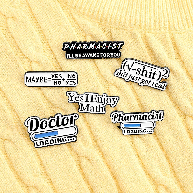 Numbers and letters brooch Doctor Formula Brooch Enamel pins Backpack Badge wi