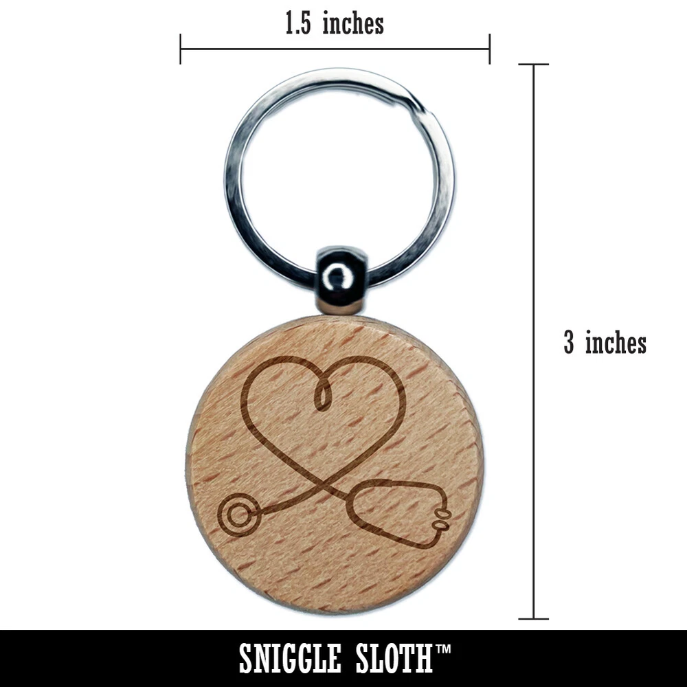Nurse Doctor Heart Shaped Stethoscope Engraved Wood Round Keychain Tag Charm