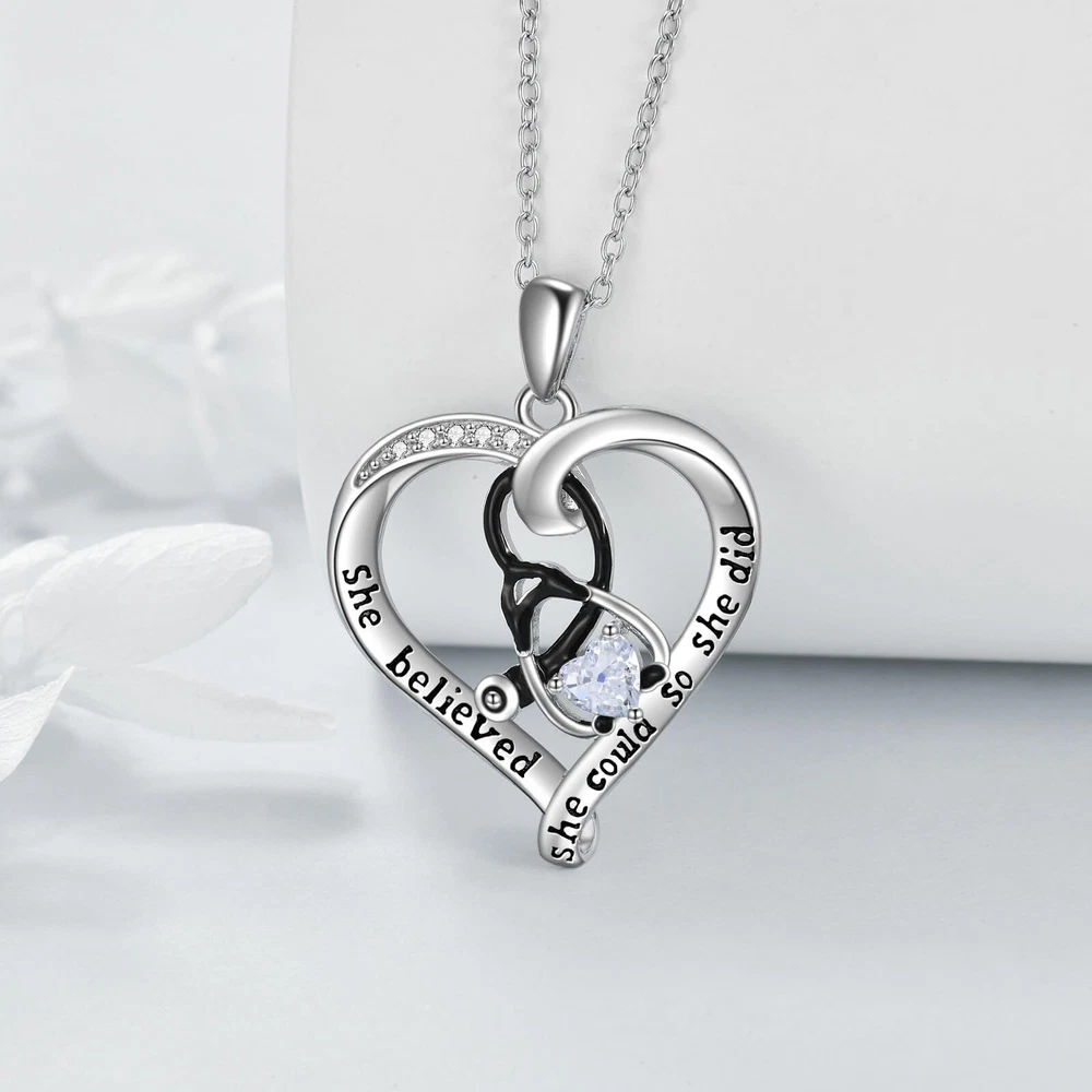 ❤Stethoscope Design❤: Nursing is a work of heart. These jewelry designs combine stethoscope. Designed for Nurse, Physician, Surgeon, Doctor, Dentist, and medical student, This is an unique and meaningful jewelry gift for them. ❤High Quality Material❤: 925 Sterling Silver, Hypoallergenic, nickel-free, lead-free, cadmium-free and does not contain any allergic material, suitable for long-term wear.It will not cause any irritation to sensitive skin and suitable for everyday wear. ❤Size❤: Birthstone Heart Pendant Size: 0.86 * 86 inches. Chain Length: 18inches + 2inches extension. Suitable for women for long-term wear. The gem color/type of this necklace is simulated Diamond (simulated April Birthstone). ❤Perfect gift for people working in the medical field❤: Our Jewelry will come with a nice gift box, perfect for any gift giving occasion, great Christmas gifts, Thanksgiving gifts, graduation gifts, birthday gifts, mother day gifts, anniversary gifts for women, mother, wife, girlfriend, daughter, grandmother, sister, friends or just for yourself. ❤Customer Service❤: We are committed to providing the best jewelry and service.If you are not very satisfied with the jewelry you received, please let us know by email,we will respond within 24 hours and try our best to solve the problem for you.