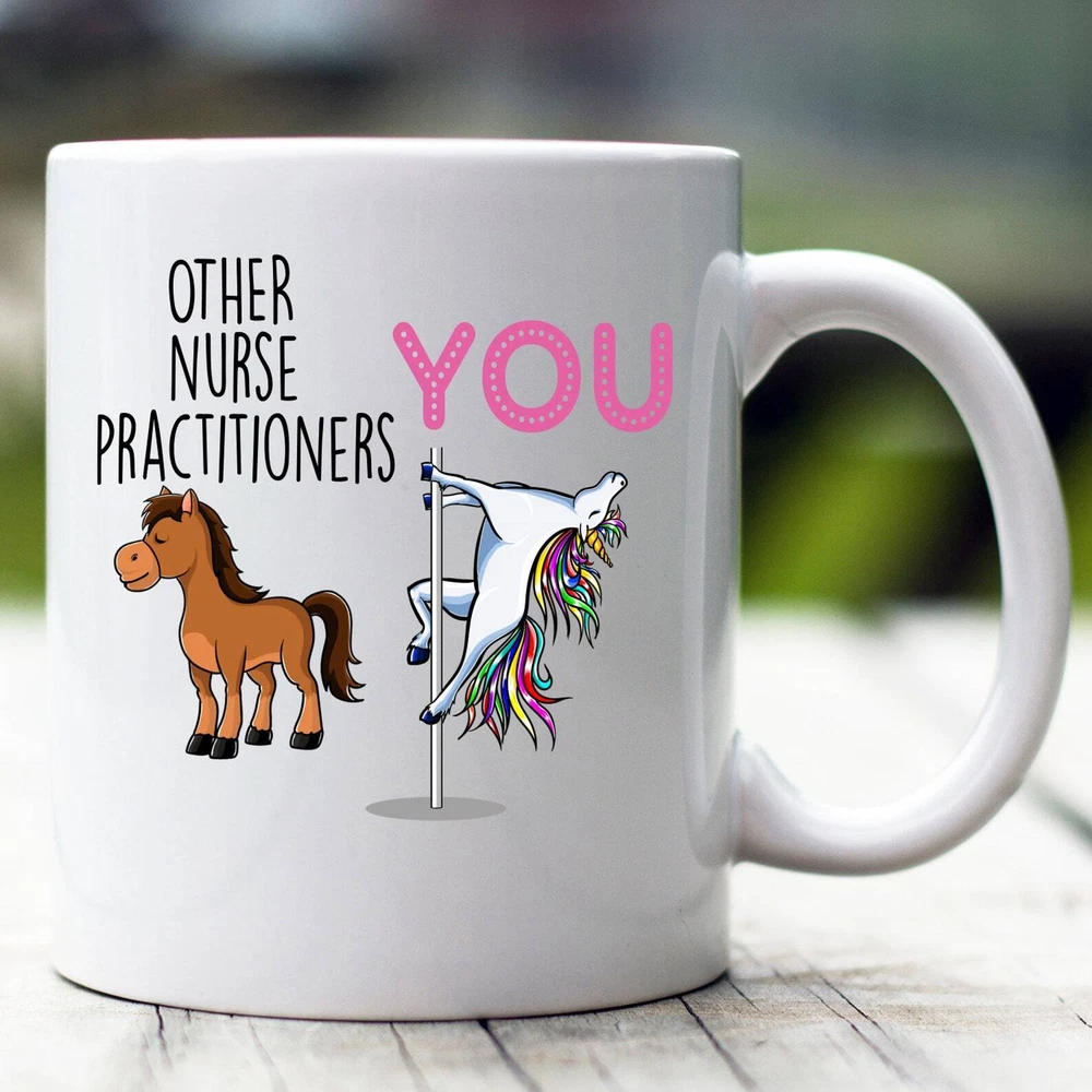 Nurse Practitioner Gift Nurse Practitioner Mug Nurse Practitioner Funny Unicorn Mug Nurse Practitioner Cup Nurse Practitioner Coffee Mug Product Details.. This high quality 11oz. ceramic white mug has a premium hard coat that provides crisp and vibrant color reproduction sure to last for years. Perfect for all hot & cold beverages. The highest quality printing possible is used. It will never fade no matter how many times you wash it. Material: 100% Ceramic. Print both sides. Dishwasher and Microwave Safe. High Gloss + Premium White Finish. Printed in the U.S.A. Personalized & Custom. We support personalized and custom mug to add custom, when placing an order, you can add notes to the "order note" in shipping address section. Also you can contact us directly via message. Shipping Info. Ready to ship in 1 to 2 business days, All products are made-to-order and proudly printed in the United States. Shipped by USPS and DHL, You will receive your order in 5-7 days. Replace & Refund. All products are defective during shipping broken, chipped will be replaced free of charge. You are not satisfied with the product, we will refund 100% money to you. If any other issues arise, please do not hesitate to message, we would be more than happy to assist you.
