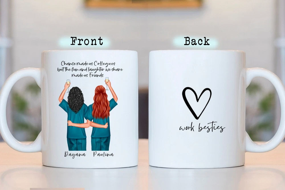 Nurse Work Besties Nurse Best Friends Personalised Nurse Gift Paramedic & Nurse Scrub Life Nhs Heroes Best Friend Gift Hospital Product Details.. This high quality 11oz. ceramic white mug has a premium hard coat that provides crisp and vibrant color reproduction sure to last for years. Perfect for all hot & cold beverages. The highest quality printing possible is used. It will never fade no matter how many times you wash it. Material: 100% Ceramic. Print both sides. Dishwasher and Microwave Safe. High Gloss + Premium White Finish. Printed in the U.S.A. Personalized & Custom. We support personalized and custom mug to add custom, when placing an order, you can add notes to the "order note" in shipping address section. Also you can contact us directly via message. Shipping Info. Ready to ship in 1 to 2 business days, All products are made-to-order and proudly printed in the United States. Shipped by USPS and DHL, You will receive your order in 5-7 days. Replace & Refund. All products are defective during shipping broken, chipped will be replaced free of charge. You are not satisfied with the product, we will refund 100% money to you. If any other issues arise, please do not hesitate to message, we would be more than happy to assist you.