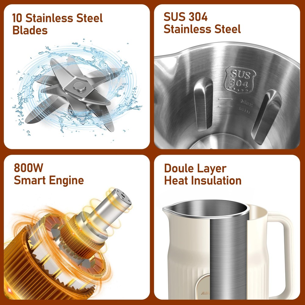 POWERFUL MOTOR - Our nut milk maker features a powerful motor and 10 upgraded durable stainless steel blades that quickly blends and strains your nuts to create a smooth and creamy milk without any grit or pulp. The machine is also equipped with a filter funnel and bag that strains out any pulp or residue, leaving you with a perfectly smooth and silky milk every time. BIG CAPACITY -This N2 Nut milk maker has been upgraded to capacity of 1000ml/35 OZ (about 5 cups), perfectly for family use, just enjoy the fresh home-made milk with your family. CREATE HEALTHY PLANT-BASED MILK - With our soy milk machine, you'll be able to enjoy fresh, delicious nut milk that's from preservatives, additives, and any other unwanted ingredients. It's the perfect way to create healthy and sustainable plant-based milk that's good for you and the environment. Order yours today and take your plant-based diet to the next level! VERSATILE - The nut milk maker machine is versatile and can be used to make a variety of plant-based milks, including almond milk, cashew milk, coconut milk, multigrain milk and more. There're 5 basic mode for meeting your need: Nut, Beans, Yogurt, Juice and Grasins. It's a mixer with blending and boiling fuction. FOOD-MATERIALS - This almond milk machine maker is made of high-quality, food-materials that are easy to clean and maintain (The body inside is made of SUS 304 stainless steel, the lid is made of food-plastic), ensuring that you can enjoy your homemade nut milk for years to come.