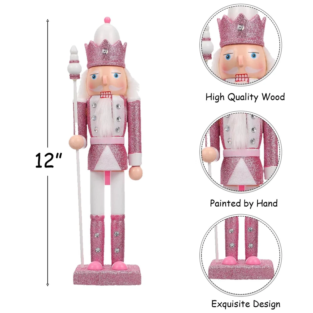 【Quality Wooden Material】- The Christmas nutcracker is made of quality wood with glitter appearance design, firm and sturdy, sustained and colorfast, the shiny items on the surface are hard to fall off; With a wide base, the nutcracker ornament can stand firmly on the table 【Optimal Size】 - In order to avoid the decorations as well as gifts being too big or too small, we set the size to 12 inches so that it will be easy to carry and can be placed on more occasions, such as desk,Christmas tree, Fireplace etc 【Wide Use of Application】- Our wooden nutcrackers add a festive touch to your home, office, store or other workplace, complementing your other Christmas decorations 【Ideal Gifts】- You can use handmade nutcracker figures to make some delicate handicrafts as ideal gifts to your friend, relatives, colleagues, classmates and neighbors on Valentine's Day, Christmas, New Year, birthday, etc., showing your love and care 【Christmas Nutcrackers】- Pink Nutcracker Figures Pink Christmas Decorations 12 Inch Pink Nutcracker Soldier Figure Decor Christmas Nutcrackers for Festival Party