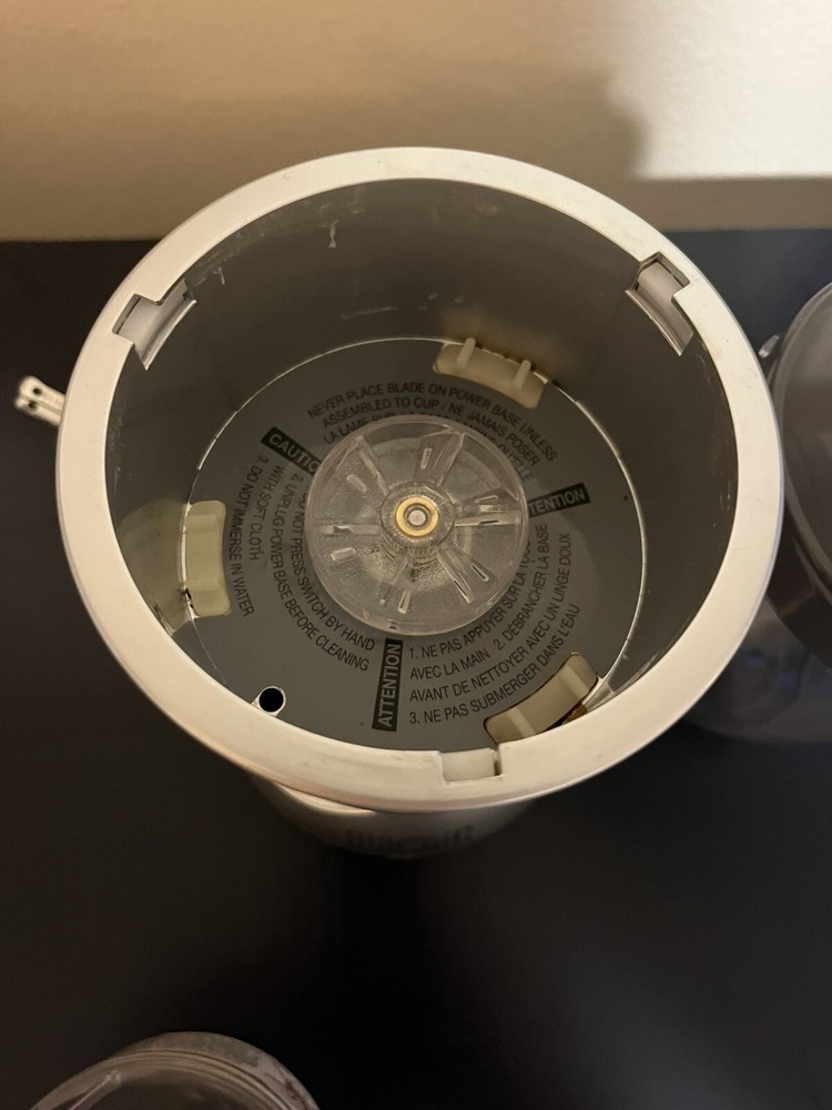 Appliance Capabilities:Blend, Liquefy, PureeManufacturer Warranty:NONEMaterial:PlasticUPC:Does not applyType:Bullet BlenderCapacity:VariousNumber of Blades:2Voltage:120VNumber of Settings/Programs:1Power Source:ElectricFeatures:Multiple AttachmentsModel:NB-201Components Included:Blades, Blender, Cup, LidAppliance Uses:Frozen Drink, Fruit, Juice, Smoothiegtin13:Does not applyNumber of Items:1Brand:NutriBulletNumber of Speeds:1Color:Gold
